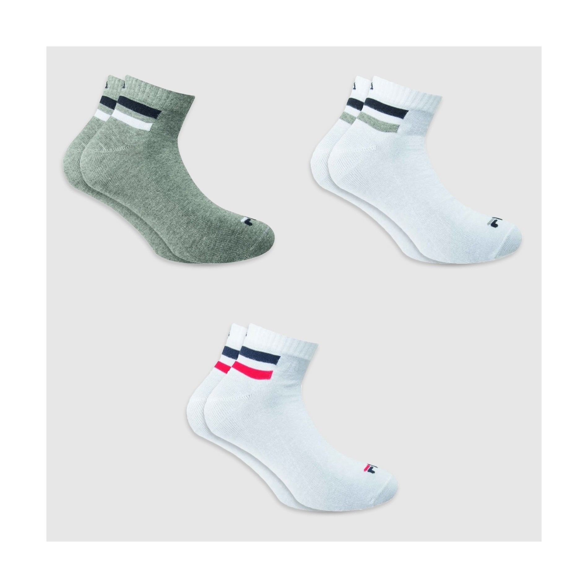 Lot de 3 Paires de Chaussettes en Coton Quarter de la marque FILA. Très confortable ses chaussettes sont colorées pour vos donner un look à la mode. 65% coton, 34% polyester, 1% élasthanne.