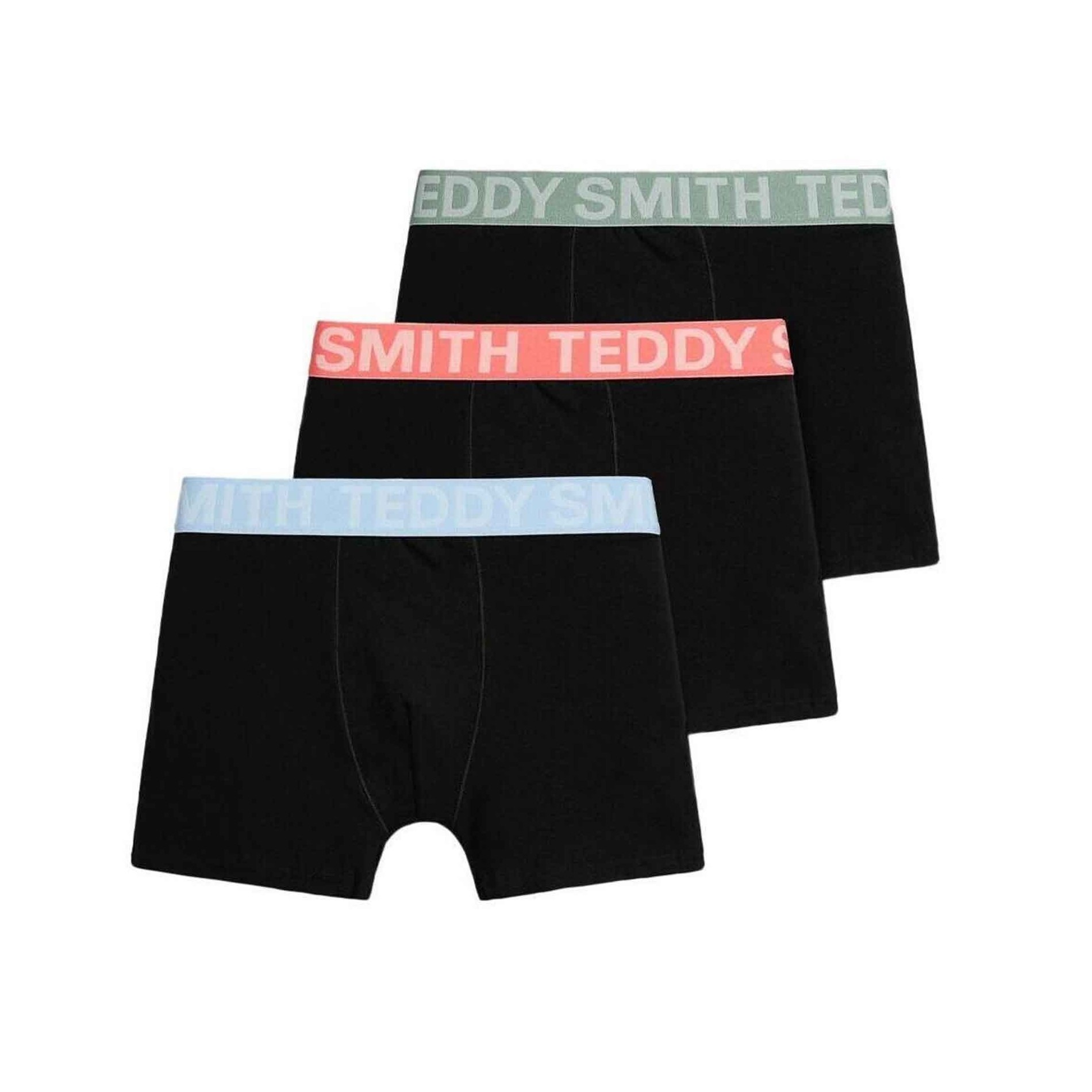 Packung mit 3 schwarzen Teddy Smith Boxershorts aus Stretch-Baumwolle mit farbigen Gürteln (grün, koralle, hellblau). Enganliegende Passform, Gürtel mit Siegel, atmungsaktiver Komfort zum besten Preis.