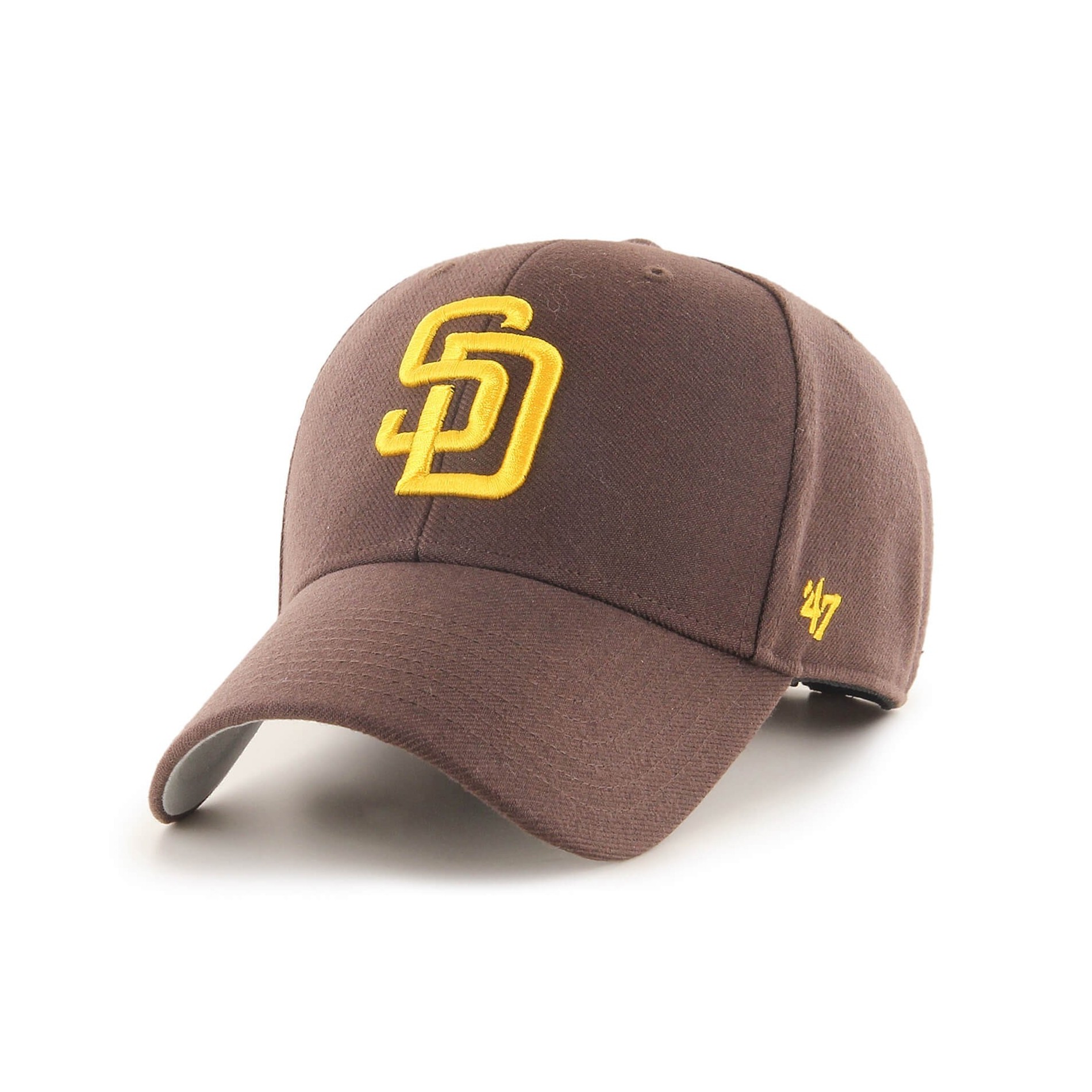 Die '47 MVP "Team Logo" San Diego Padres Cap ist eine Baseballkappe, strukturiert und gebogen, mit einer Reliefstickerei auf der Vorderseite, einer '47 Stickerei auf der Seite und einem Klettverschluss auf der Rückseite.