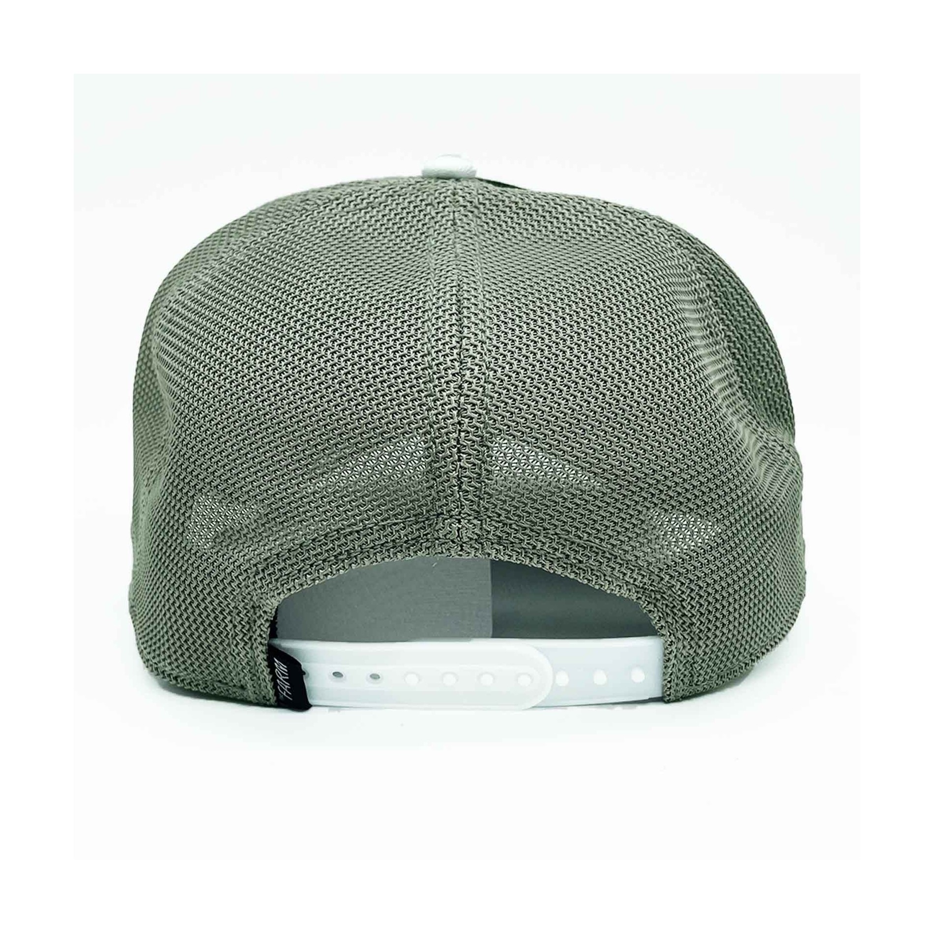 Das sorgfältige Design kombiniert ein kontrastierendes, weißes, gebogenes Visier, eine schwarze Kappe und ein khakigraues Rückennetz für ein modernes und vielseitiges Aussehen.