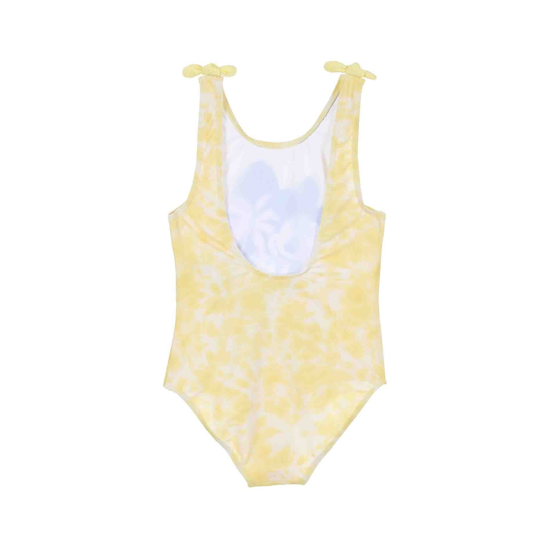 Süßer einteiliger Minnie Mouse Badeanzug für Mädchen. Rosa oder gelb im tropischen Surf-Look. Bequem, dehnbar und mit offizieller Disney-Lizenz.