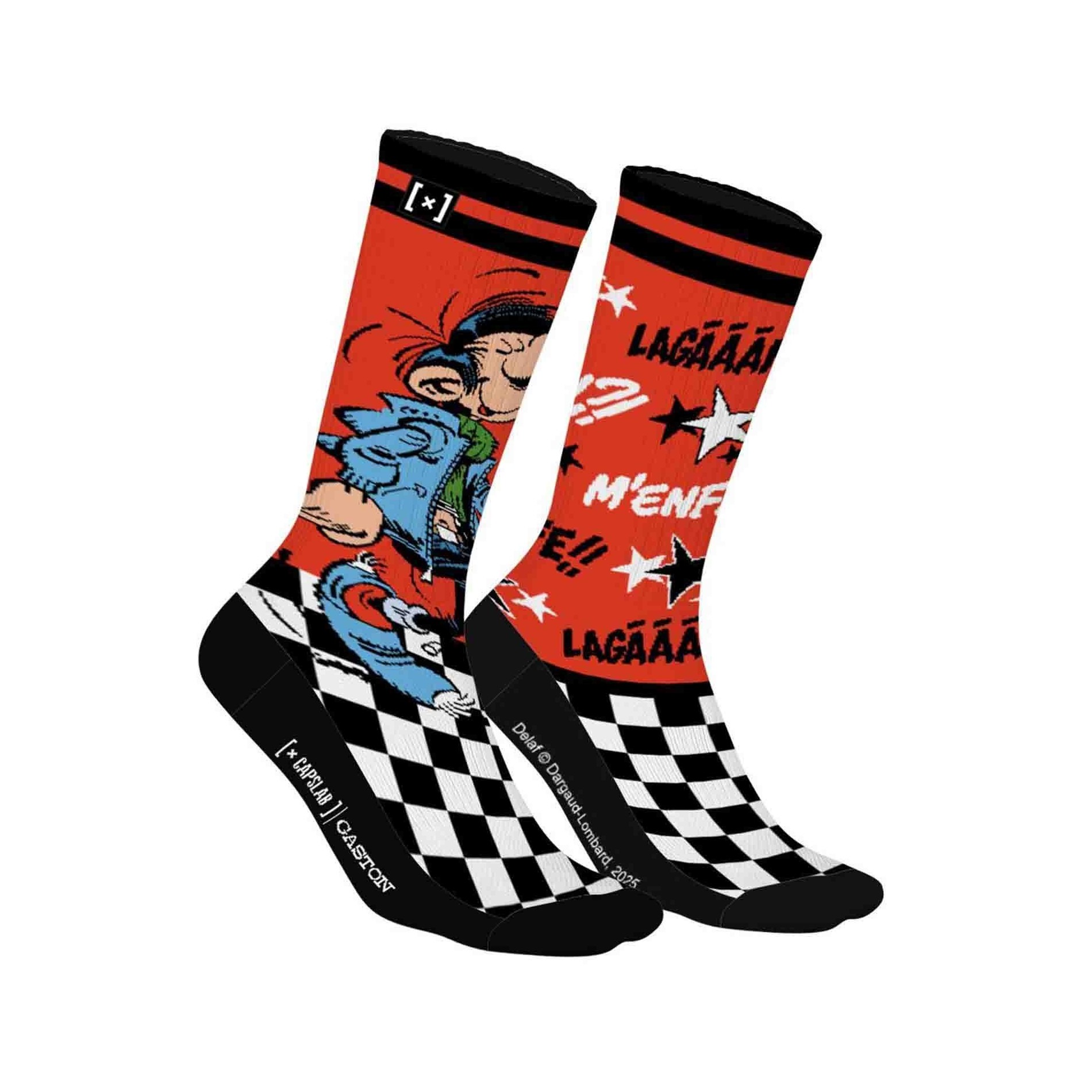 Bekenne dich zu deinem Stil mit dieser Kollektion von knöchelhohen Socken mit offizieller Gaston Lagaffe-Lizenz, die von +CAPSLAB entworfen wurden. Inspiriert von der verrückten Welt der Kultfigur von Franquin, bieten dir diese Socken einen originellen, schrägen und ultrabequemen Look. Mit ihren comicgetreuen Illustrationen und bunten grafischen Mustern vereinen sie Spaß und Qualität. Ideal, um sie im Alltag zu tragen oder um deine Liebe zum "geek chic" Stil zu bekräftigen!