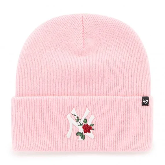 Design: Large NY logo embroidered on front, adorned with a delicate red rose