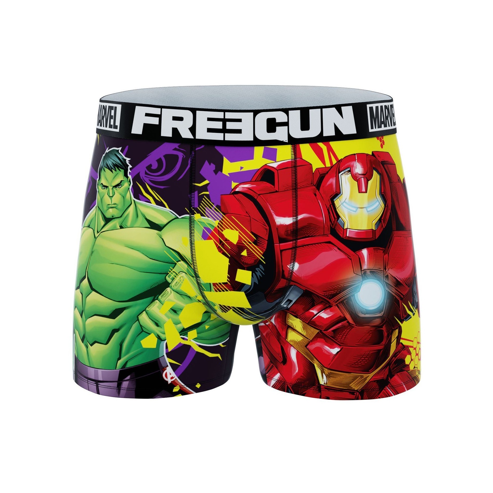 Boxer Freegun Boy Marvel Hulk & Iron Man. Official MARVEL Avengers license. 92% Polyester, 8% Elastane 100% Cotton lining