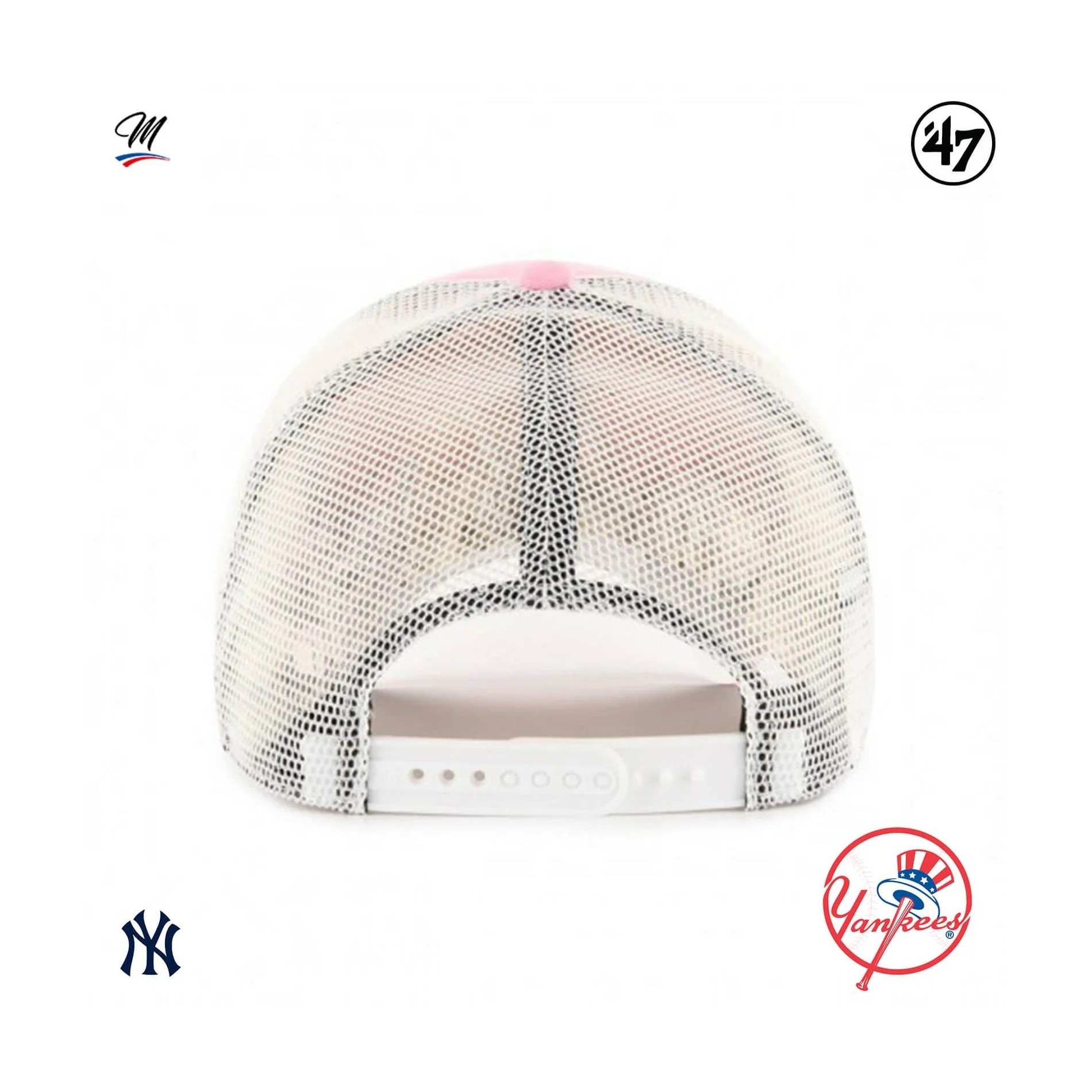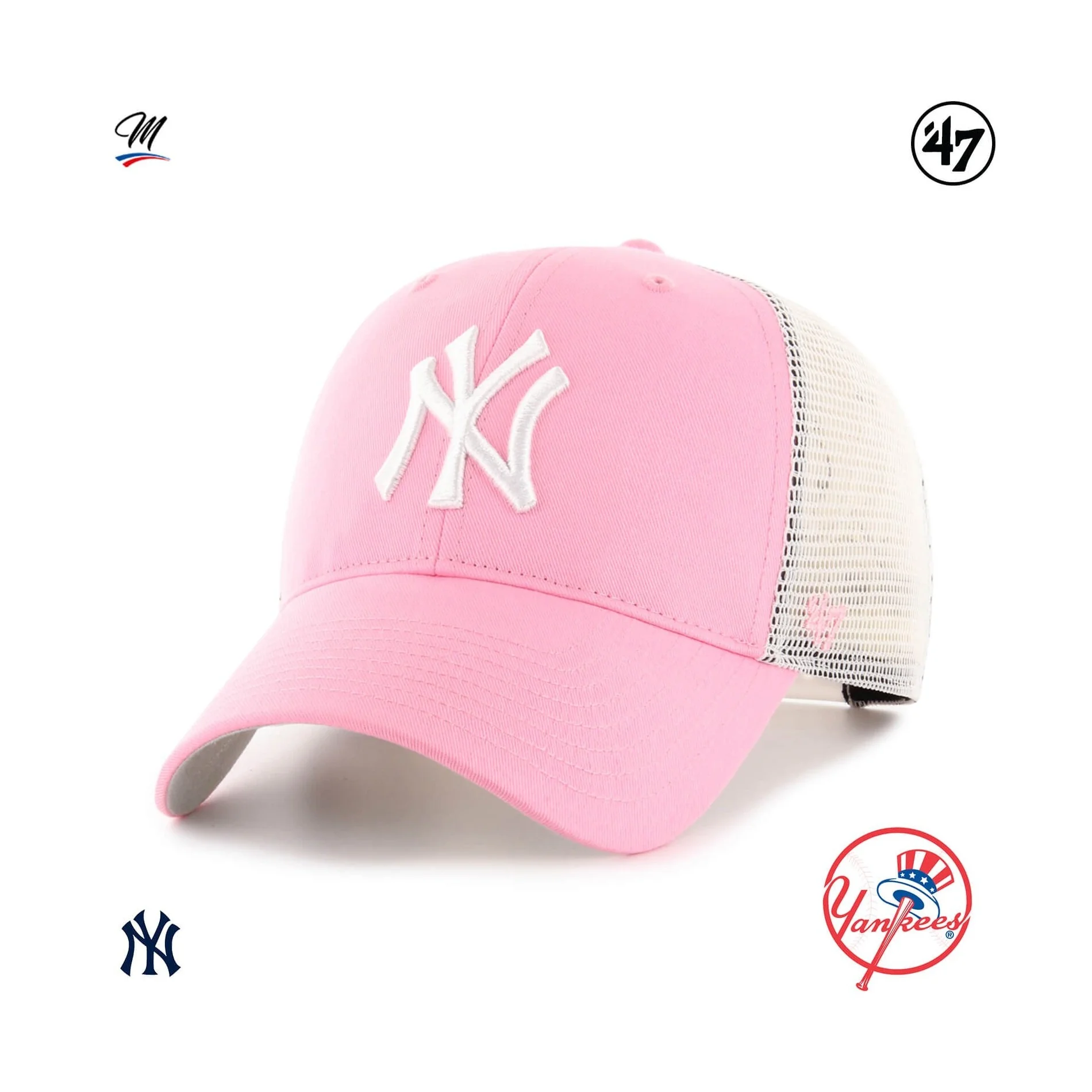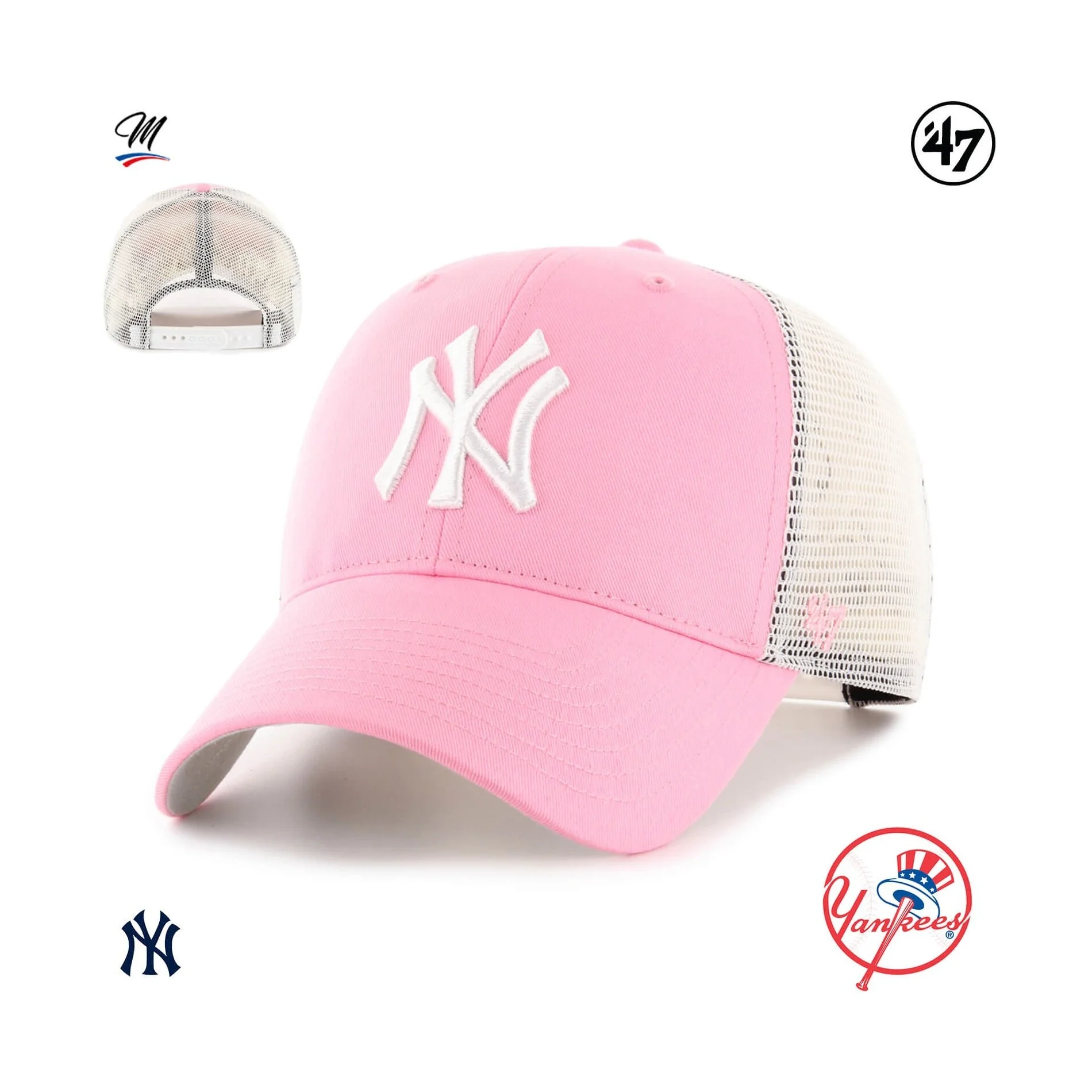 The Branson '47 MVP New York Yankees cap is a structured, curved Trucker baseball cap with raised embroidery on the front, '47 embroidery on the side.
