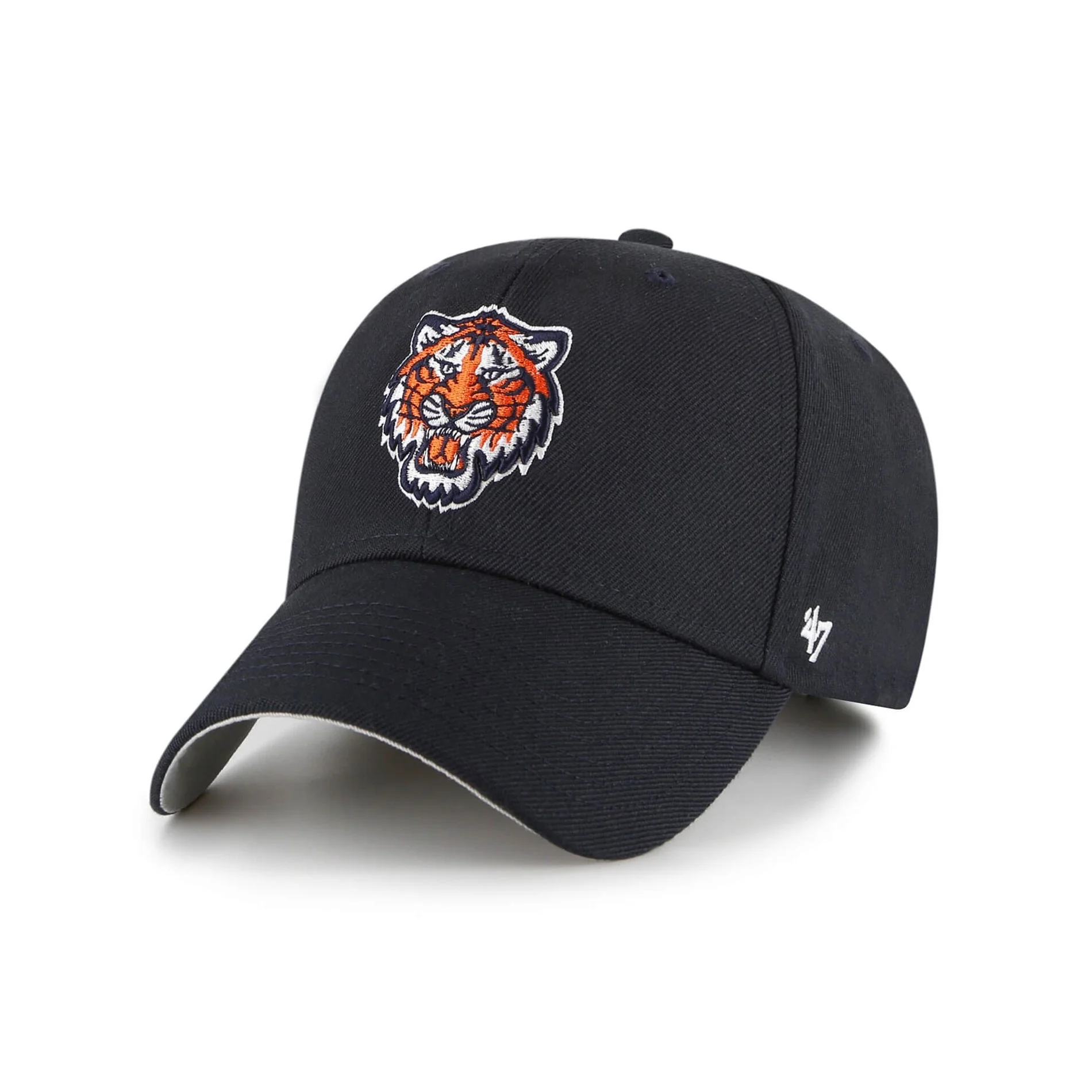 The Detroit Tigers '47 MVP "Team Logo" cap is a structured, curved baseball cap with raised embroidery on the front, '47 embroidery on the side, velcro closure on the back.