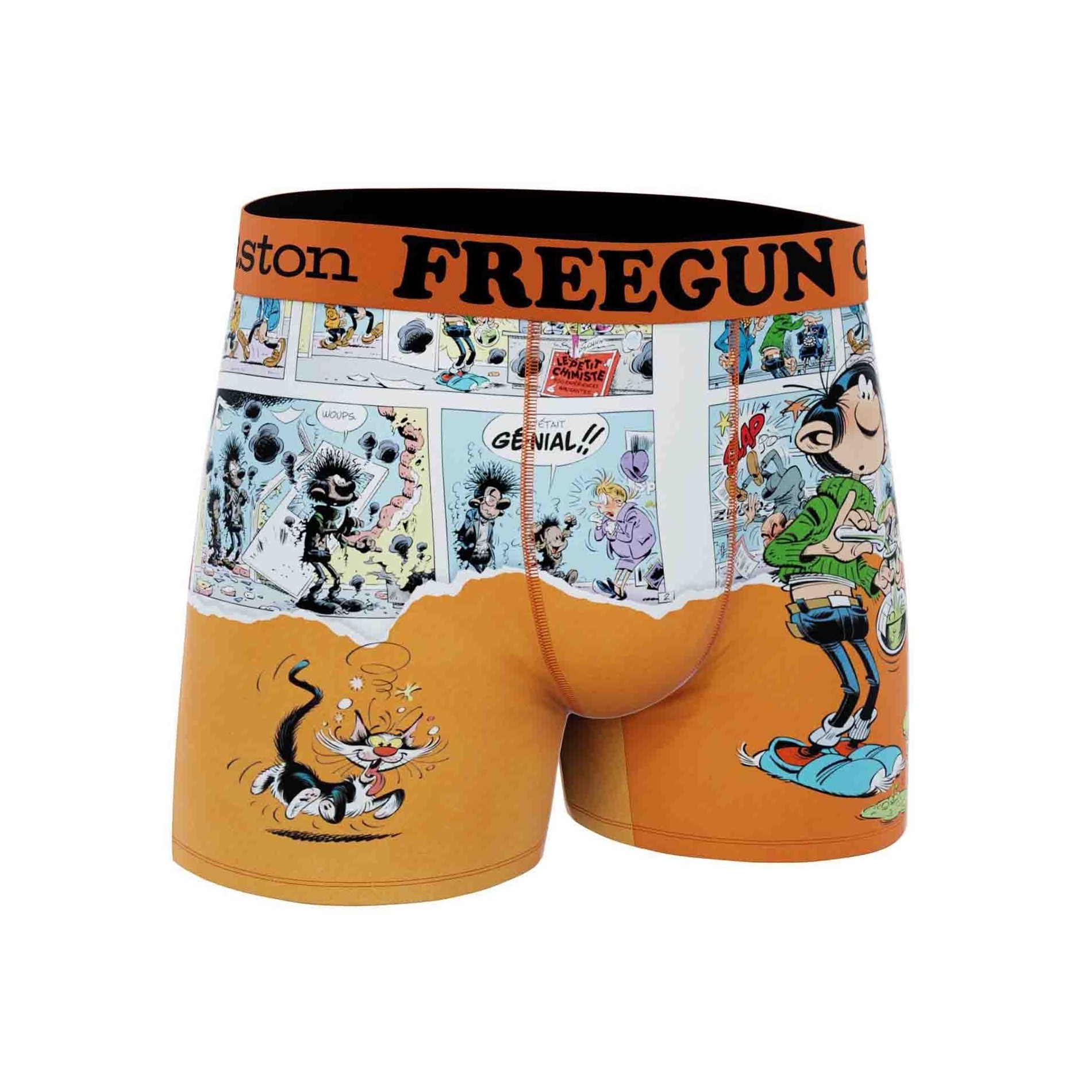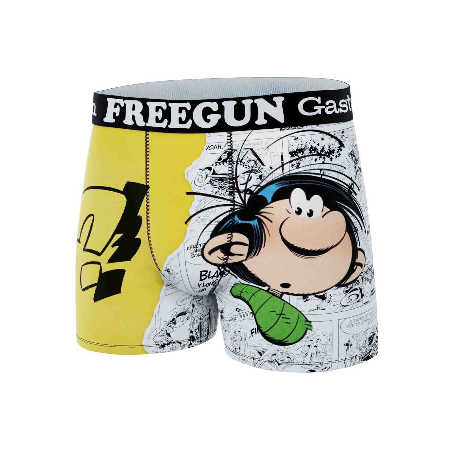 Treat yourself to a touch of humor and comfort with this set of 3 Gaston Lagaffe microfiber boxers for men, made by FREEGUN, the benchmark brand for stylish, comfortable underwear. Each boxer in this set features motifs and designs inspired by the wacky world of the famous comic strip character created by Franquin.
