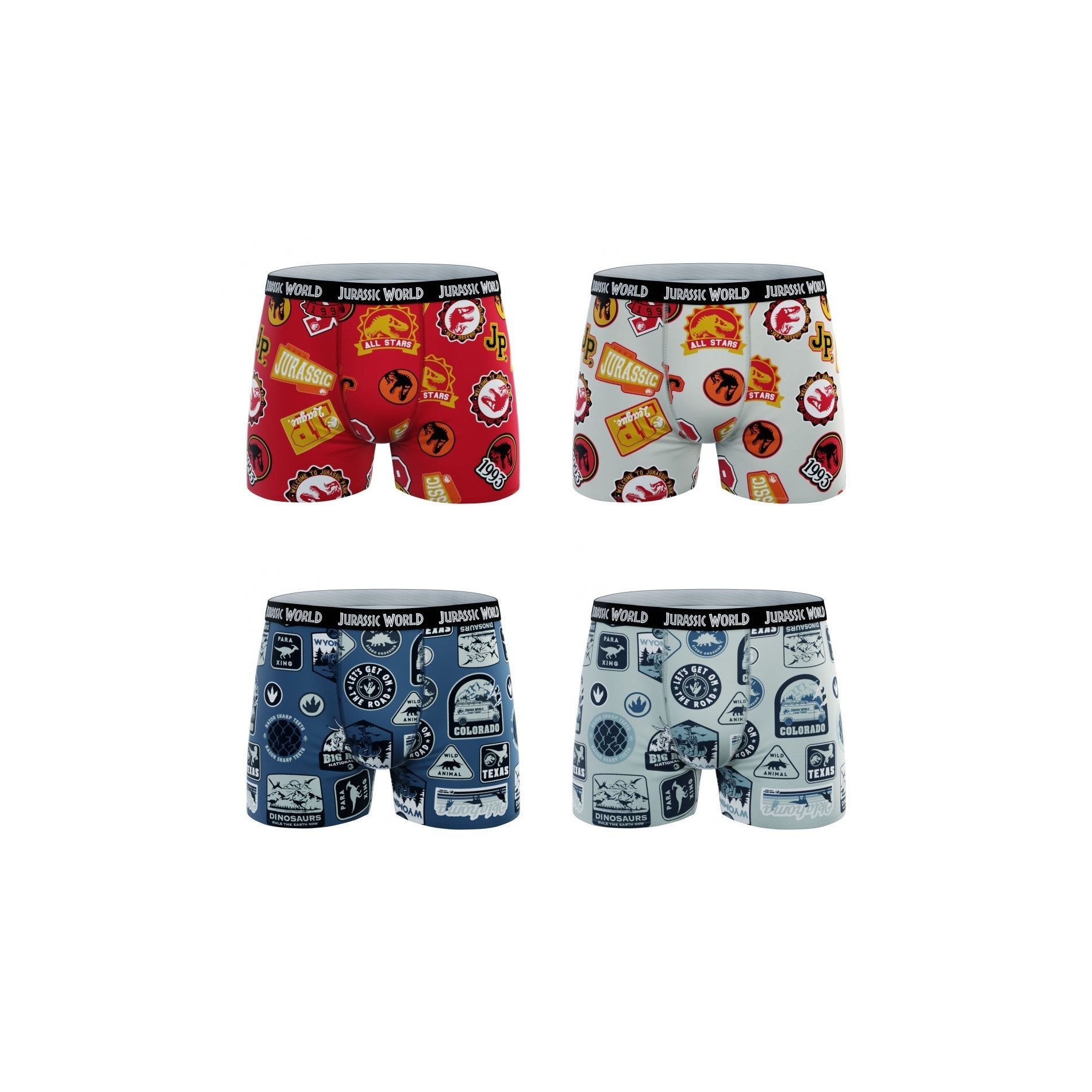 Juego de 4 calzoncillos de algodón para niño de Jurassic Park - Licencia oficial de Universal Studios Material: 100% algodón para un tacto suave y una gran libertad de movimientos. Tu hijo encontrará sus dinosaurios favoritos, incluido el famoso T-Rex de la película.