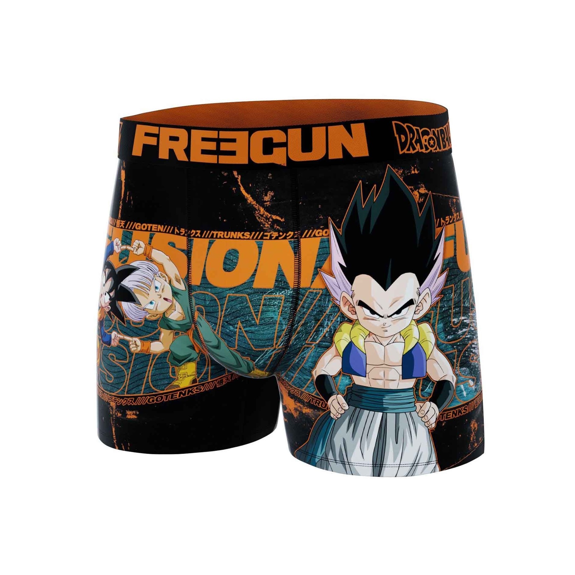 Boxer Microfibre FREEGUN pour Homme représentant le personnage de Gotenks qui est le résultat de la fusion entre San Goten et Trunks.