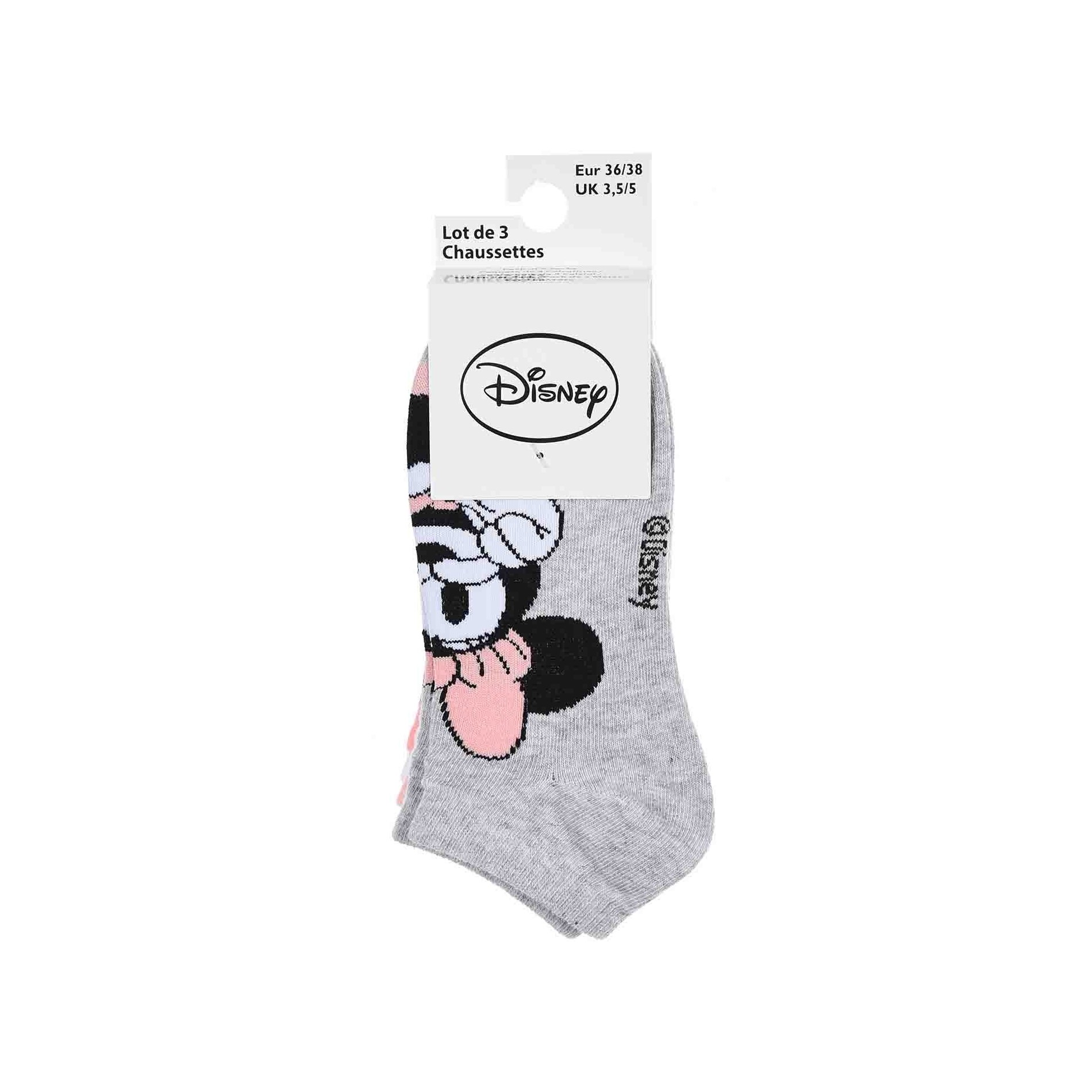 Lot de 3 paires de socquettes femme en coton "Minnie Mouse" – Licence Disney officielle. Coupe basse, motifs variés et colorés. Confortables et respirantes. Tailles : 36/38 ou 39/41