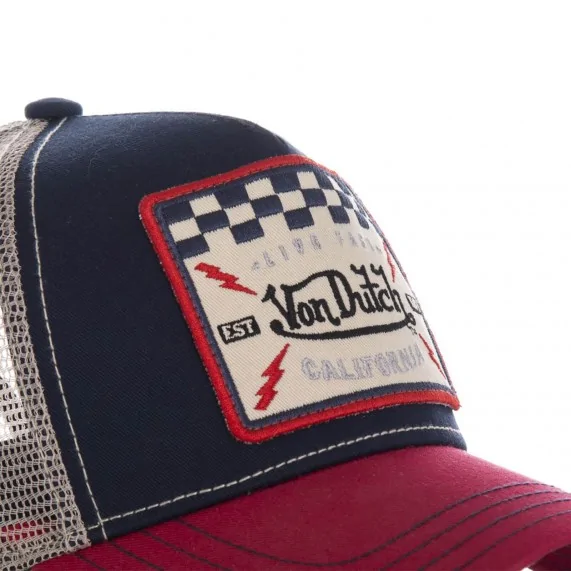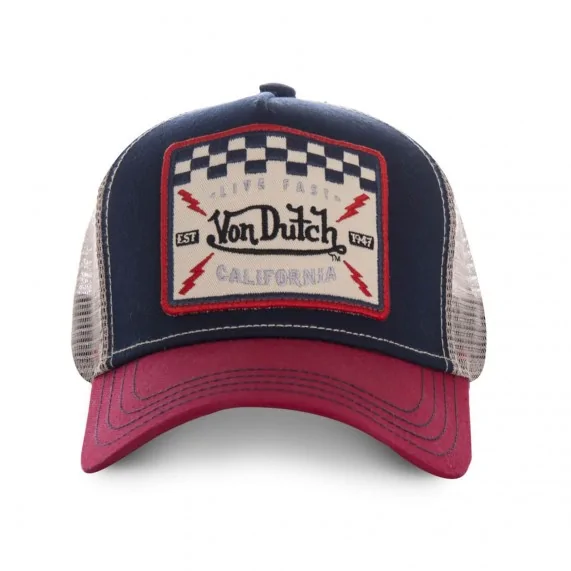 A huge"Motorcycles Live Fast California VON DUTCH" patch, referring to a race finish, is embroidered on the front.