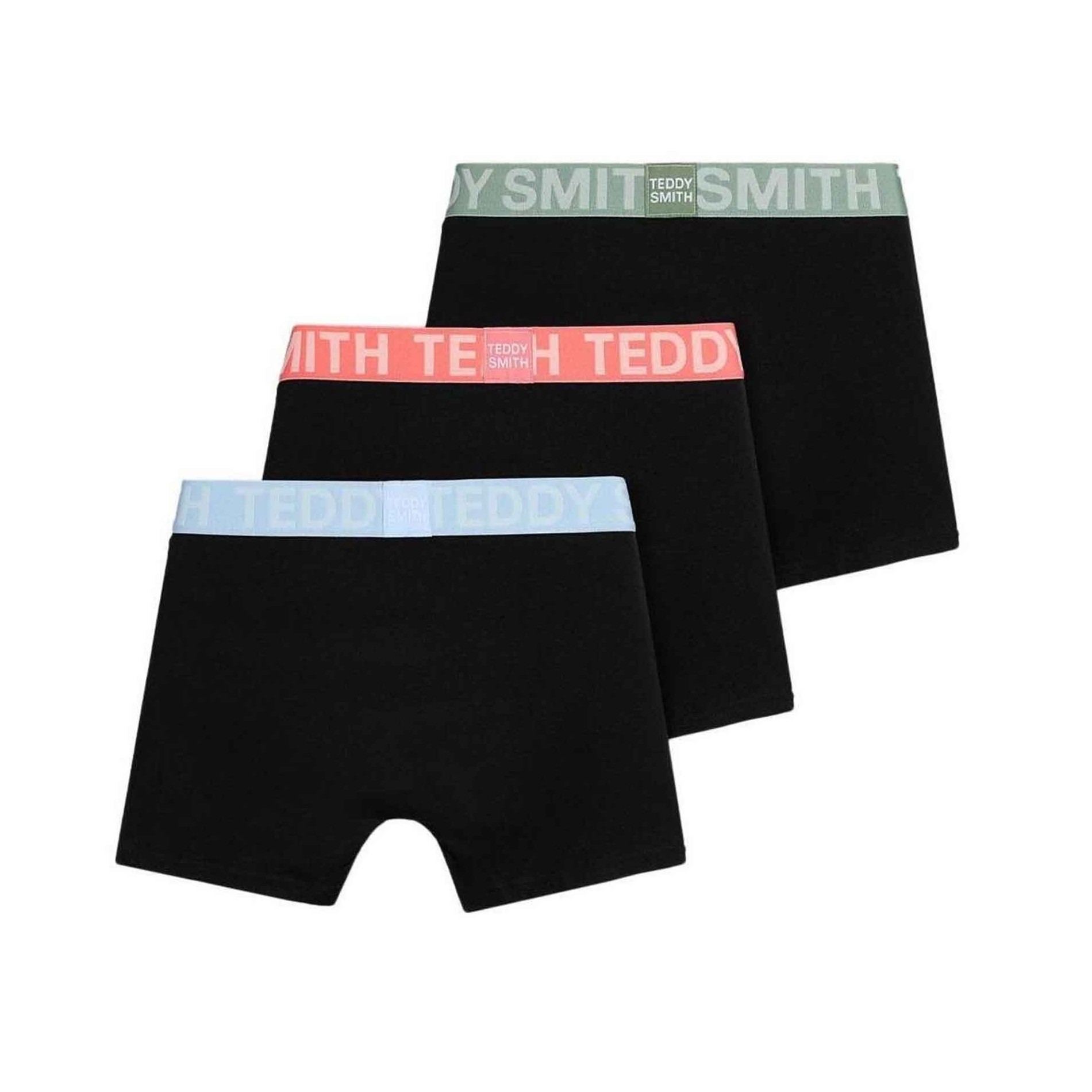 Confezione da 3 boxer Teddy Smith neri in cotone elasticizzato con cintura colorata (verde, corallo, azzurro). Vestibilità slim, fascia in vita con marchio, comfort traspirante al miglior prezzo.
