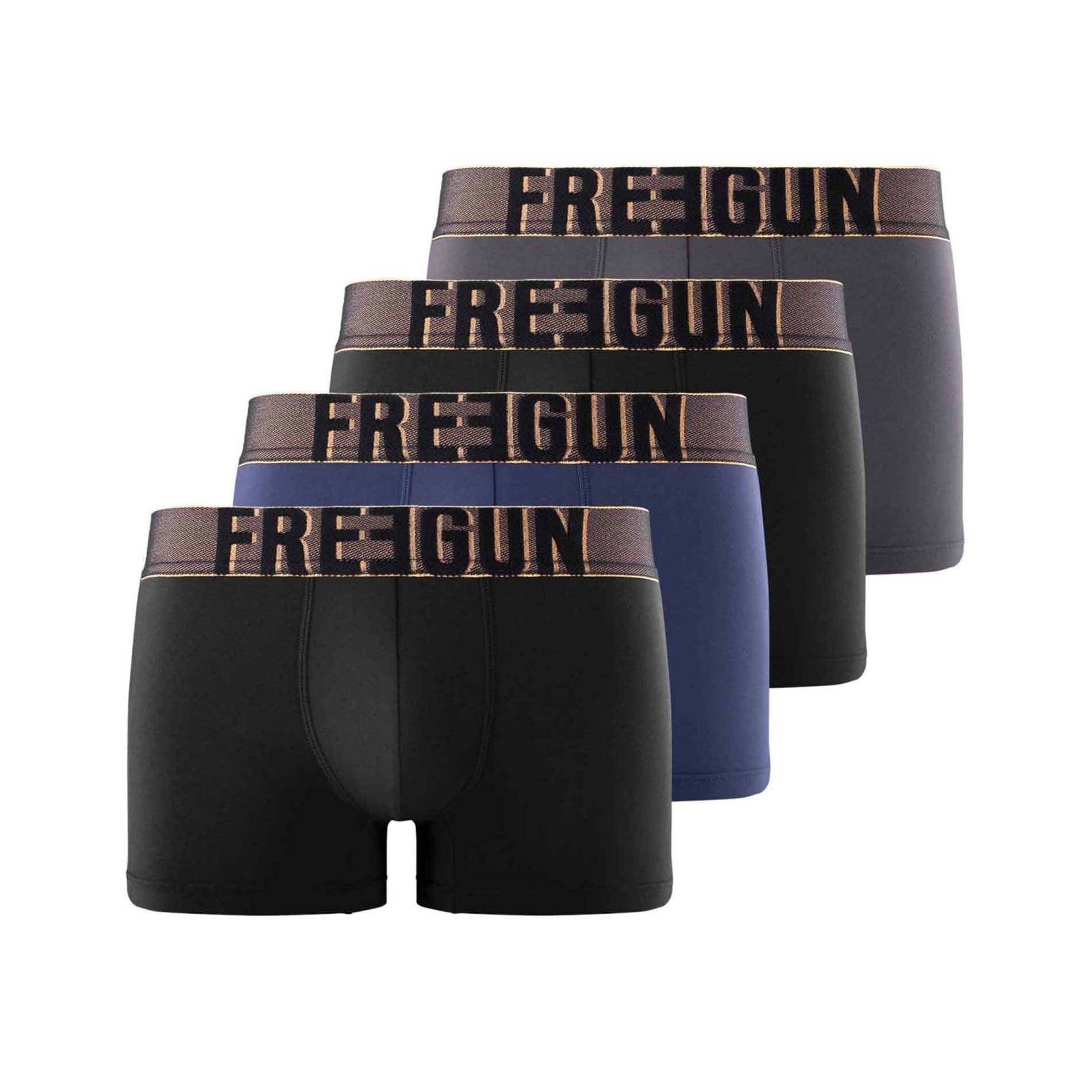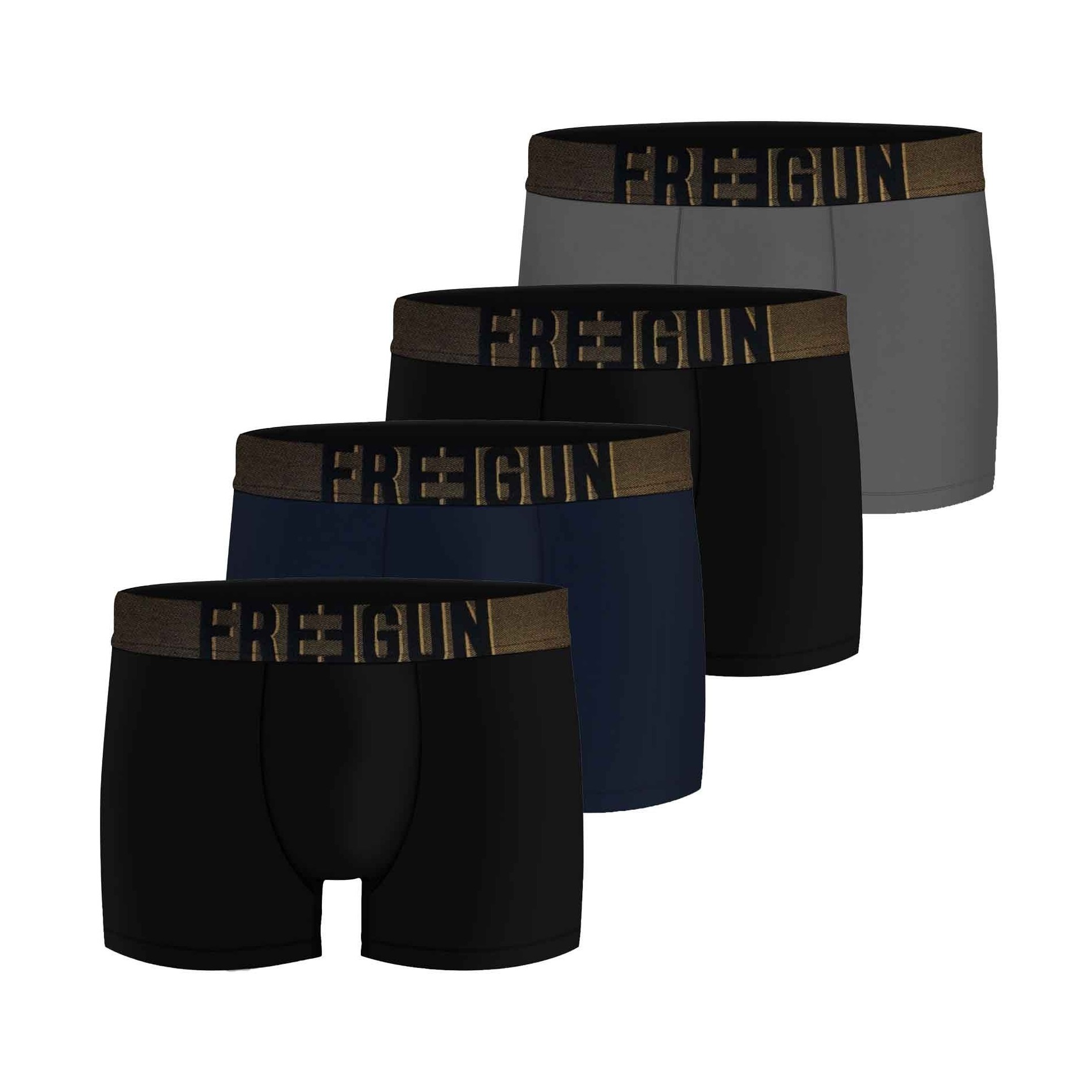 La firma di Freegun, in versione Soft Touch: 4 boxer seconda pelle, morbidi, traspiranti ed elasticizzati, per un comfort quotidiano senza pensieri.