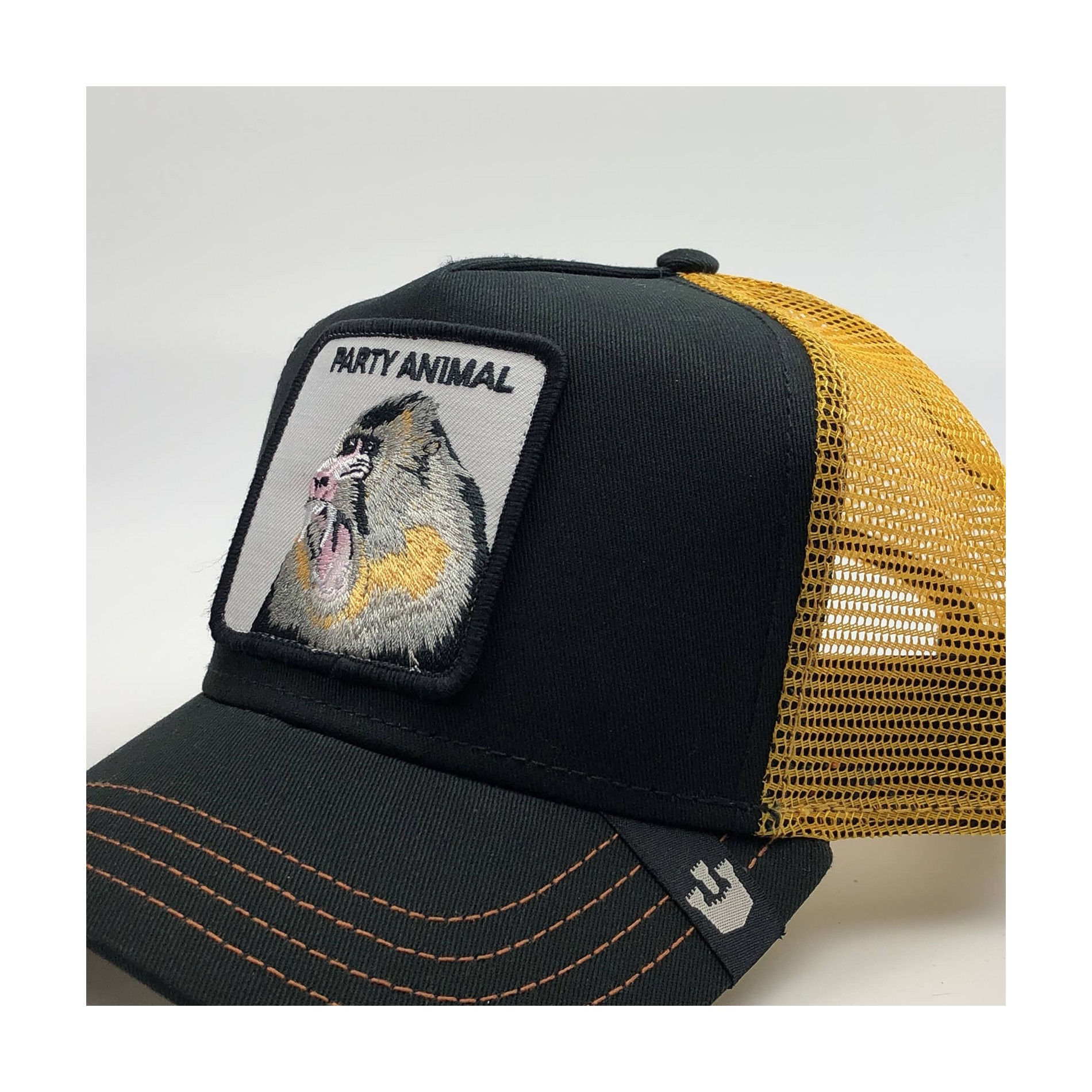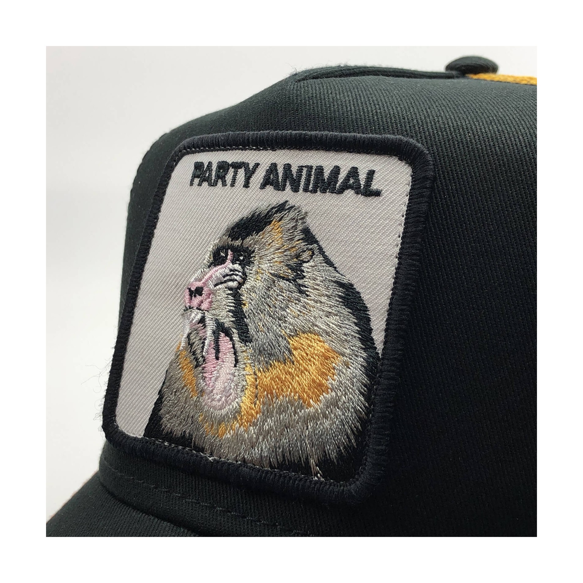 Cappello originale GOORIN BROS, Trucker da baseball con rete, toppa ricamata Baboon e scritta "Party Animal".Etichetta con logo Goorin Bros sulla visiera.Il cappuccio è regolabile sul retro, è regolato da una linguetta di plastica a scatto. (diametro tra 50cm e 61cm).Lavate bene il vostro berretto a mano per conservarlo per molti anni!