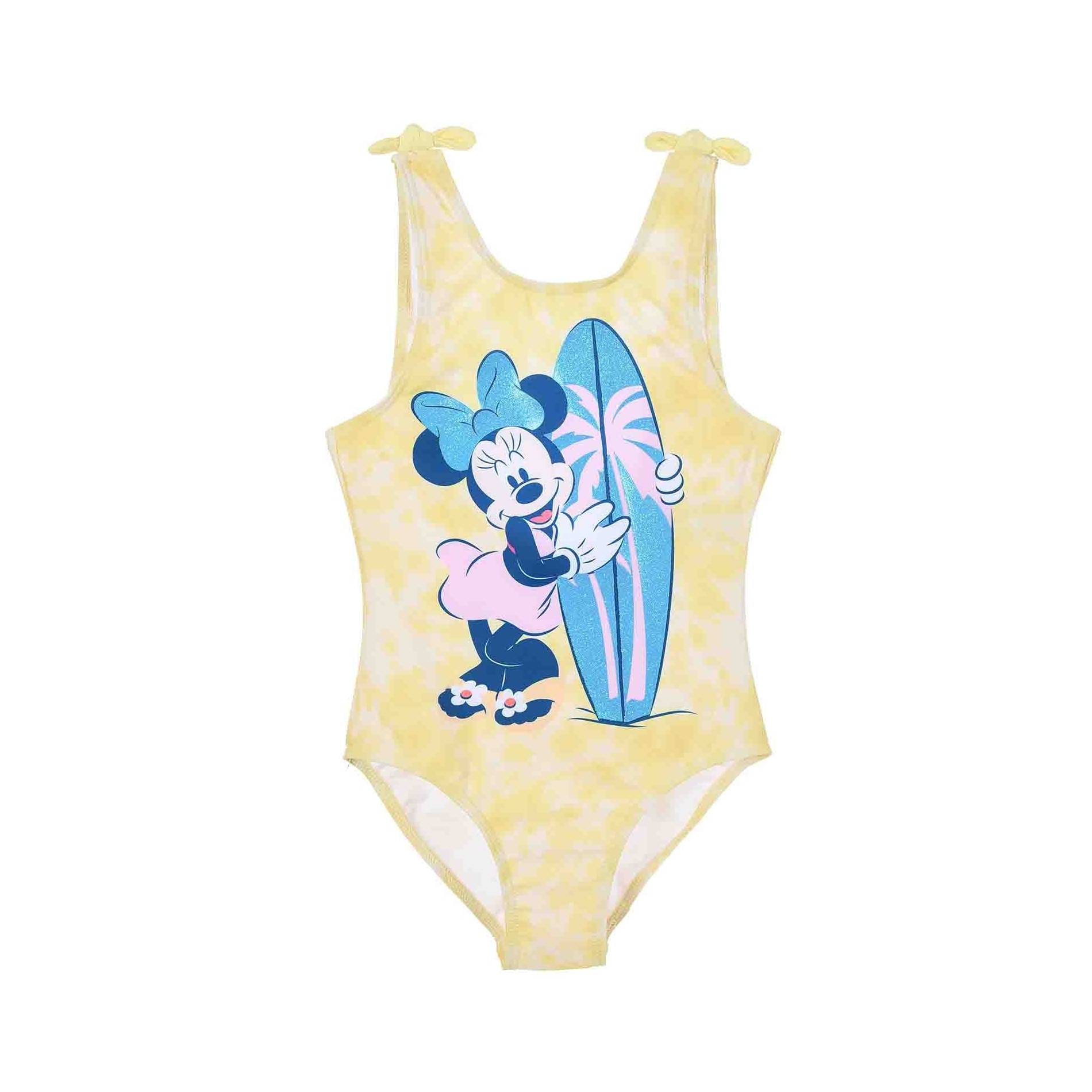 Adorabile costume da bagno a 1 pezzo di Minnie Mouse per bambina. Rosa o giallo, look da surfista tropicale. Comodo, elastico e con licenza ufficiale Disney.