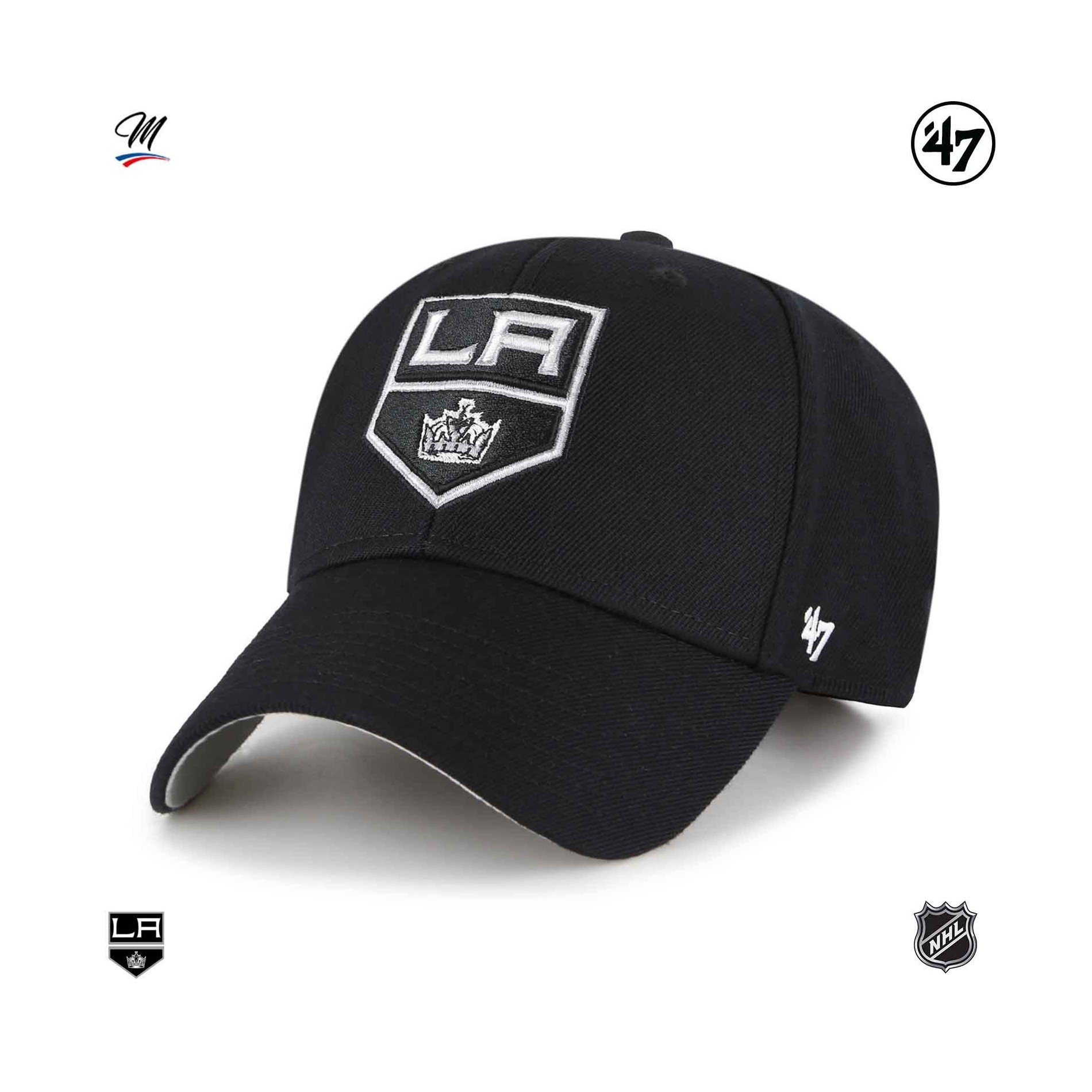 De '47 NHL "Team Logo MVP" Los Angeles Kings cap is een gestructureerde, gebogen ijshockeypet met reliëfborduursel op de voorkant, '47 borduursel op de zijkant en een klittenbandsluiting op de achterkant.