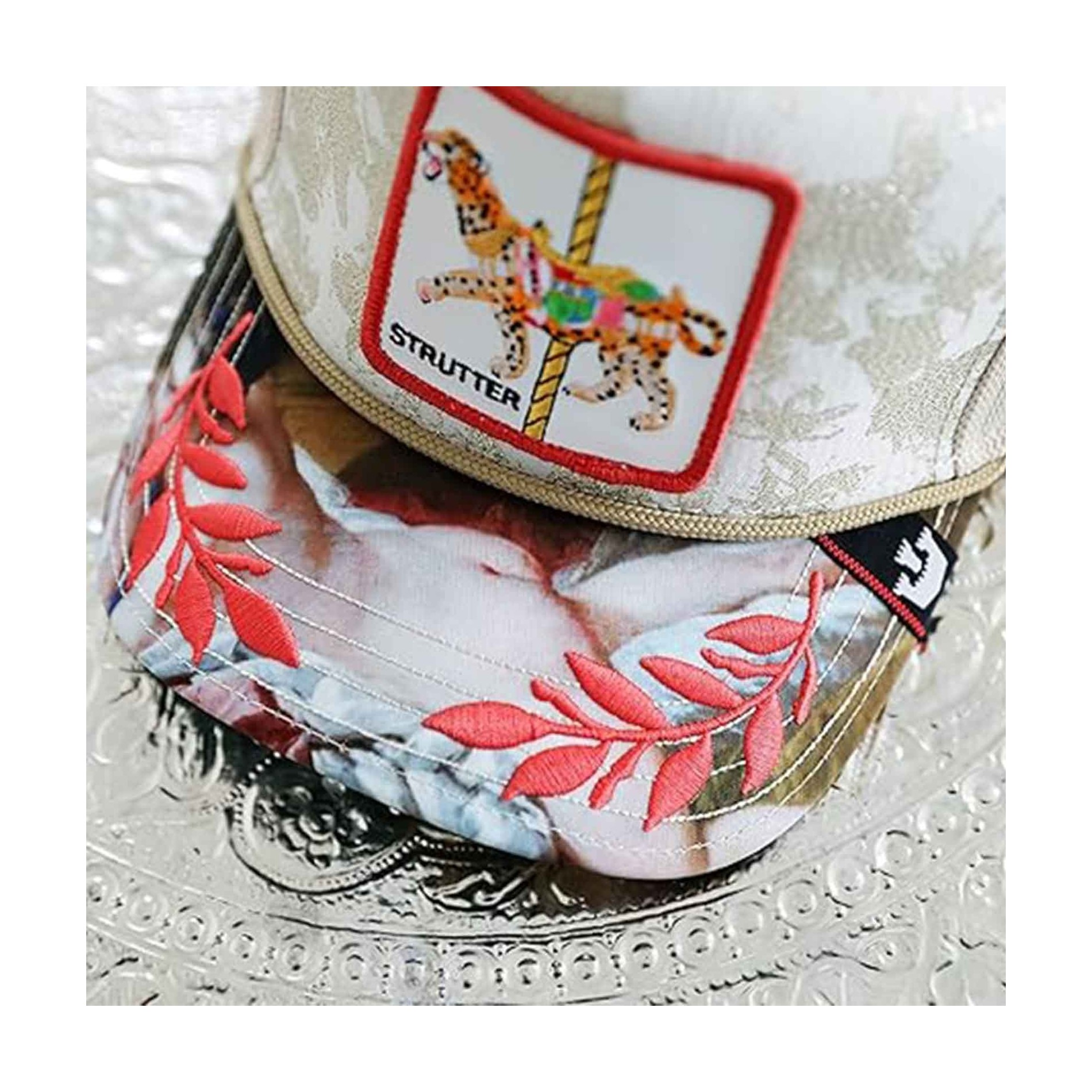 Authentieke GOORIN BROSpet, Baseball Trucker met luxe mesh, geborduurde patch vaneen Panter op een Carrousel draaimolen en de inscriptie"GREATEST".