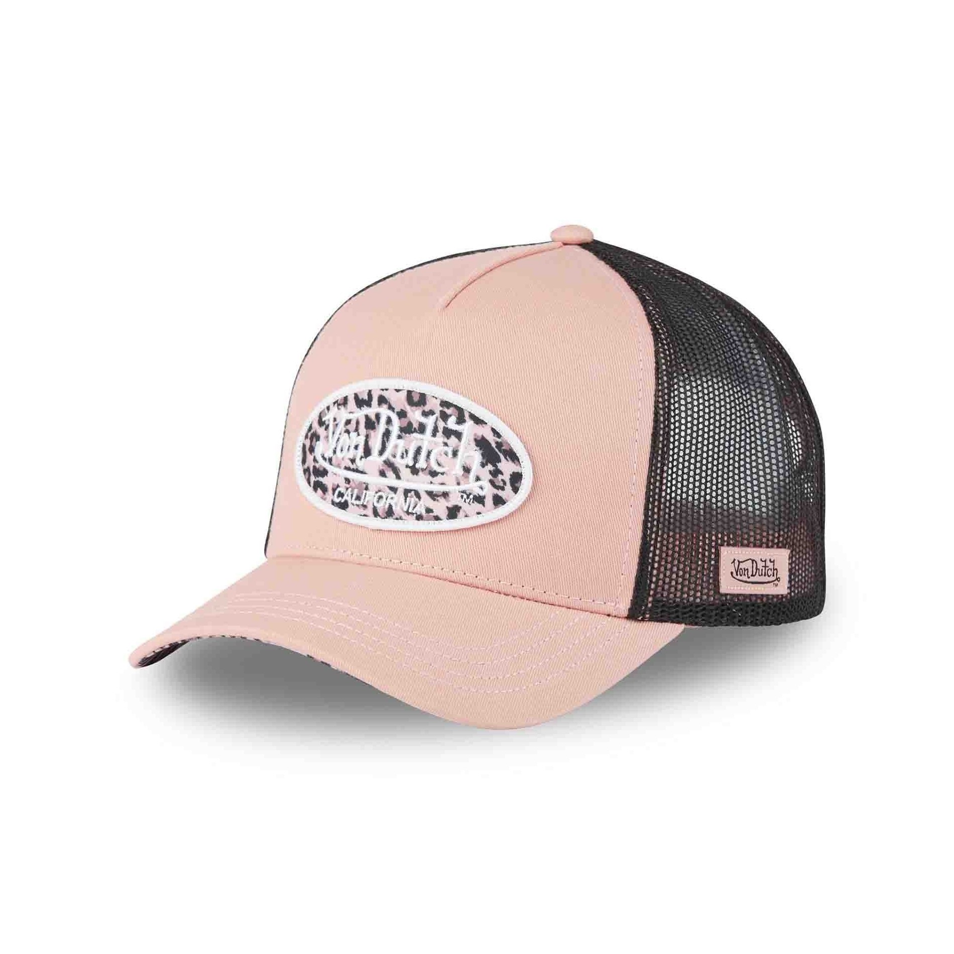 Deze trucker pet Von Dutch combineert vintage stijl en moderniteit met zijn luipaardprint patch op een poederroze achtergrond. Ideaal voor een trendy casual look.