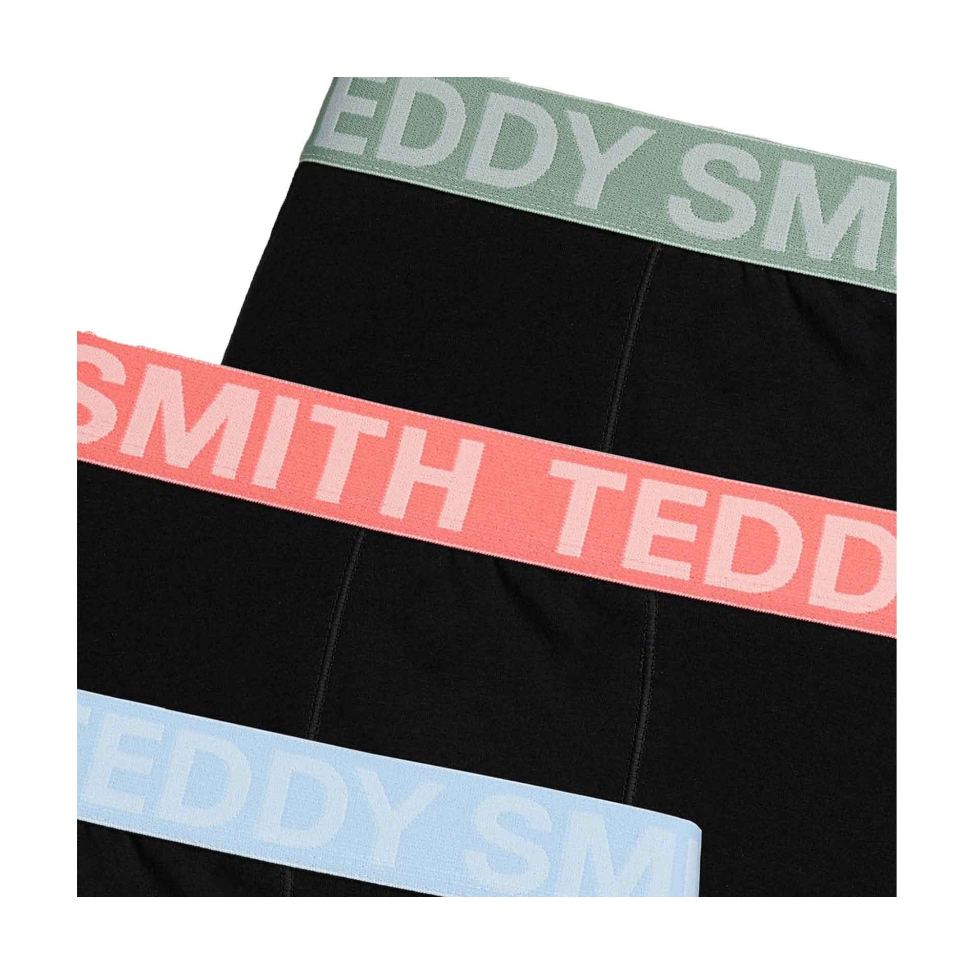 Set van 3 zwarte Teddy Smith stretch katoenen boxershorts met gekleurde taillebanden (groen, koraal, hemelsblauw). Slim fit, gebrandmerkte tailleband, ademend comfort voor de beste prijs.