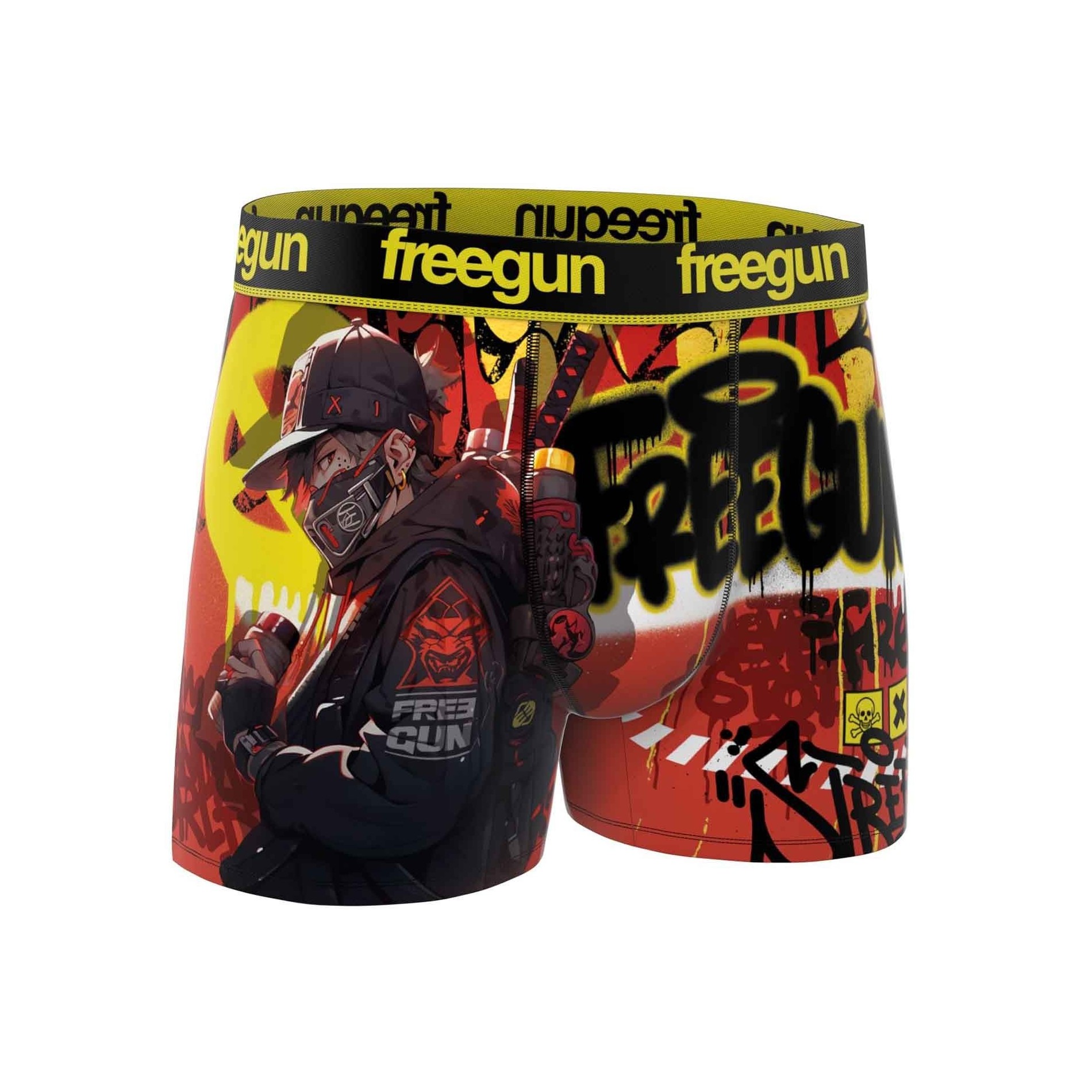 Set van 6 herenboxerslips Freegun - "Street Futur Robot" collectie - Microvezel Zachte, ademende, stretchstof (92% polyester - 8% elastaan) Elastische tailleband Freegun voor optimale ondersteuning Originele motieven: robots, street art, manga, graffiti, futuristische motoren Dagelijks comfort dankzij platte naden en vierwegstretchstof