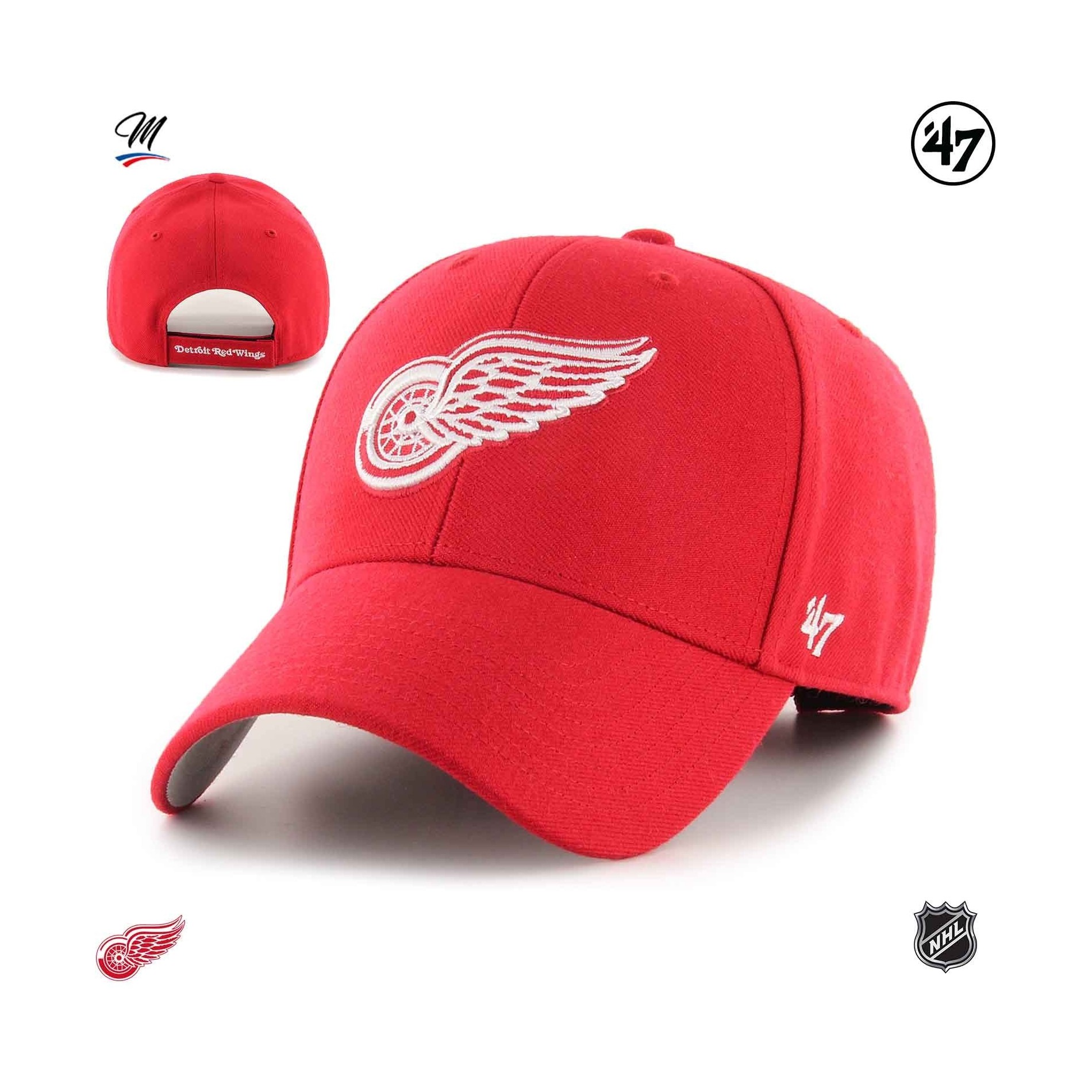 De Detroit Red Wings '47 NHL MVP "Team Logo" cap is een gestructureerde, gebogen ijshockeypet met borduursel aan de voorkant, '47 borduursel aan de zijkant en een klittenbandsluiting aan de achterkant.