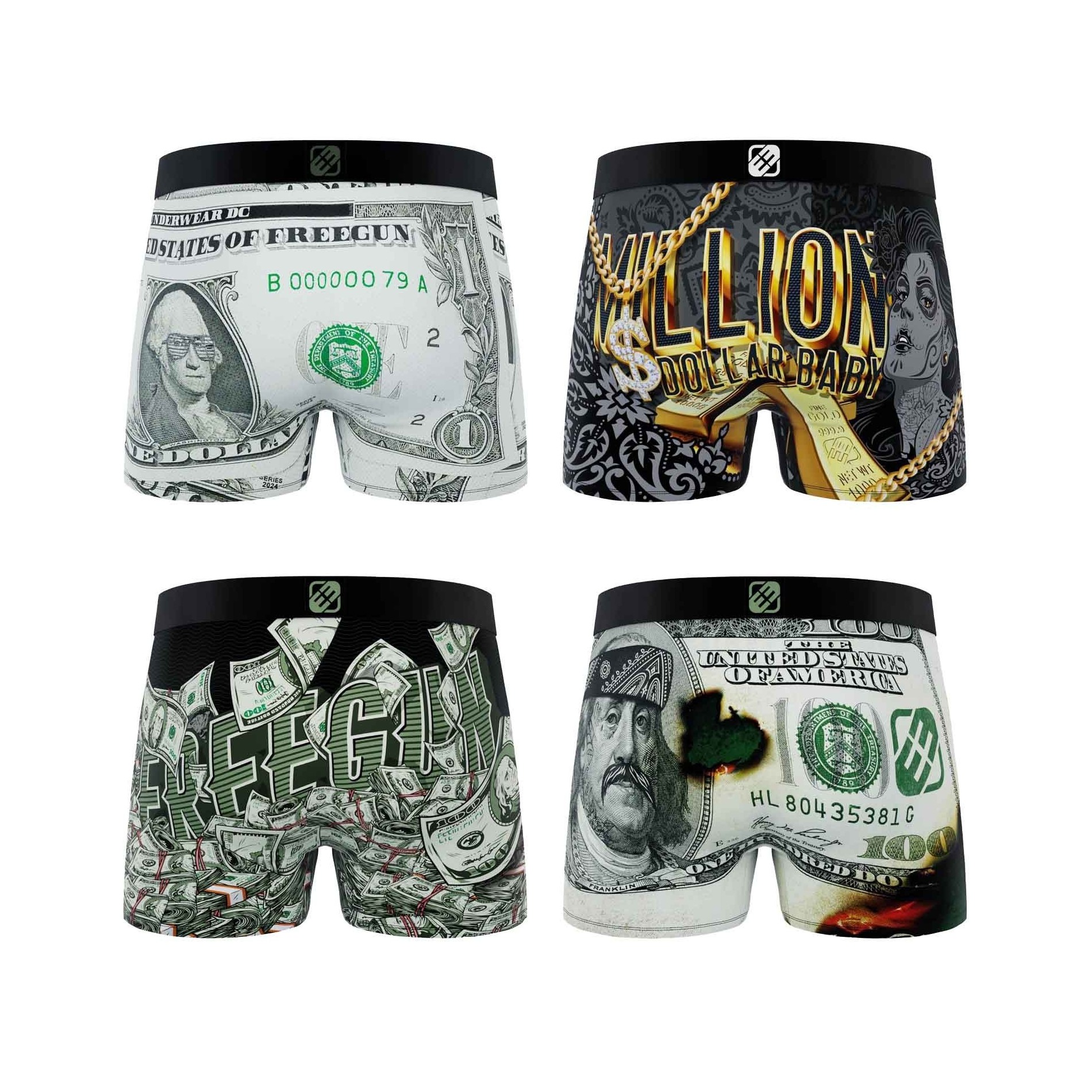 Prachtig pak van 4 FREEGUN Boxers voor jongens opgedragen aan degenen die vangeld en Greenbacks houden.