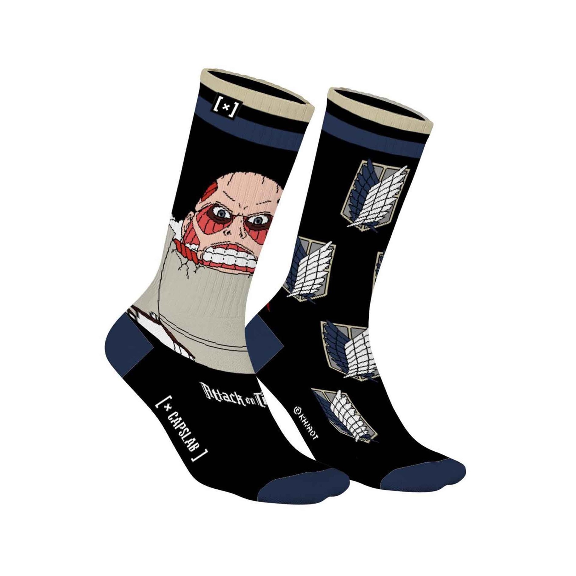Laat je passie voor Attack on Titan zien terwijl je comfort en prestaties combineert met dit paar katoenen sportsokken van CAPSLAB. Deze sokken zijn speciaal ontworpen voor atleten en fans van het Shingeki no Kyojin-universum en combineren een dynamische stijl met optimaal comfort. Ze zijn verkrijgbaar met drie emblematische tekens en zijn perfect voor je sportsessies of je momenten van ontspanning.