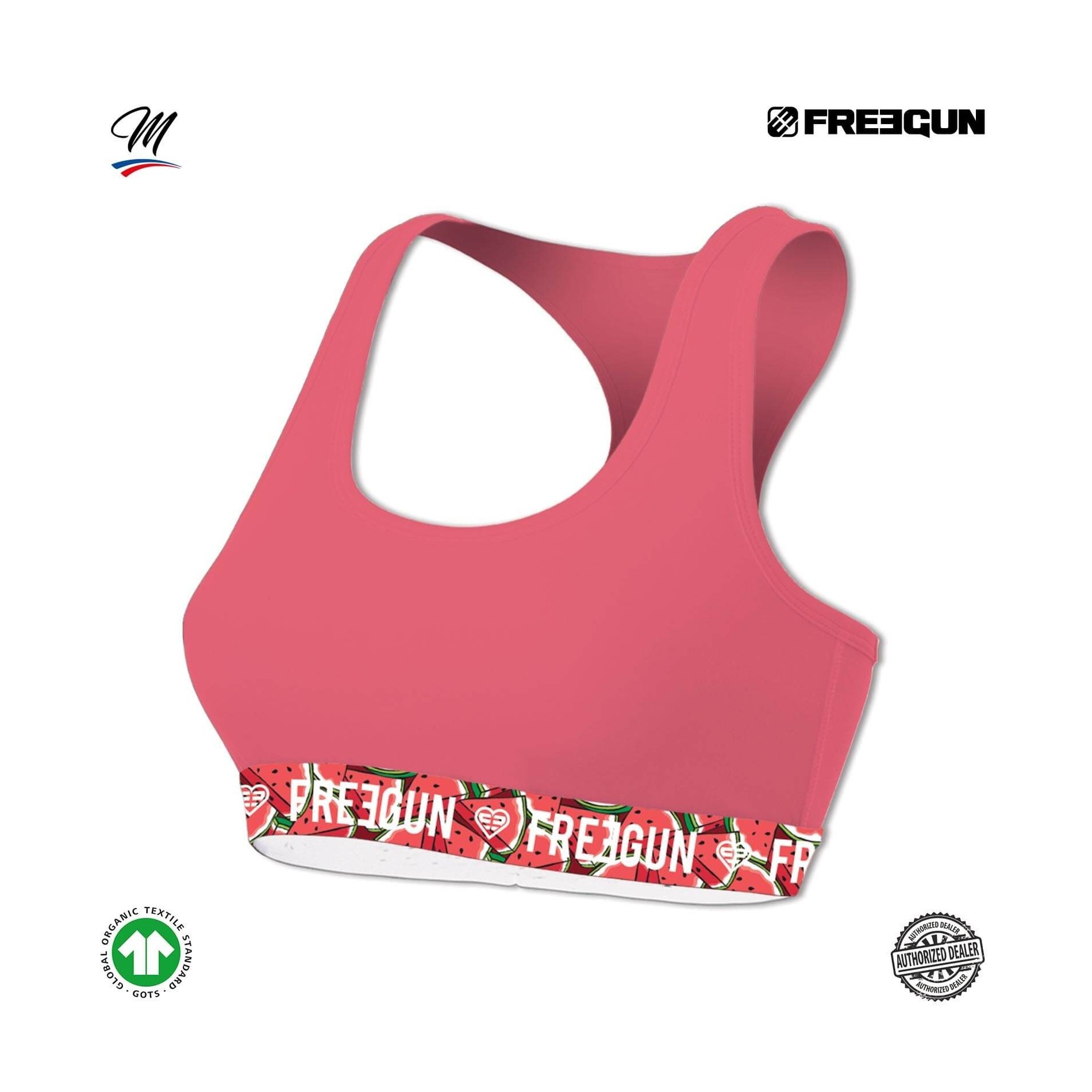 Set med 4 bygelbehåar i ekologisk bomull för flickor Freegun i enfärgade eller mönstrade färger, resår i midjan för bra stöd. 95% ekologisk bomull, 5% elastan
