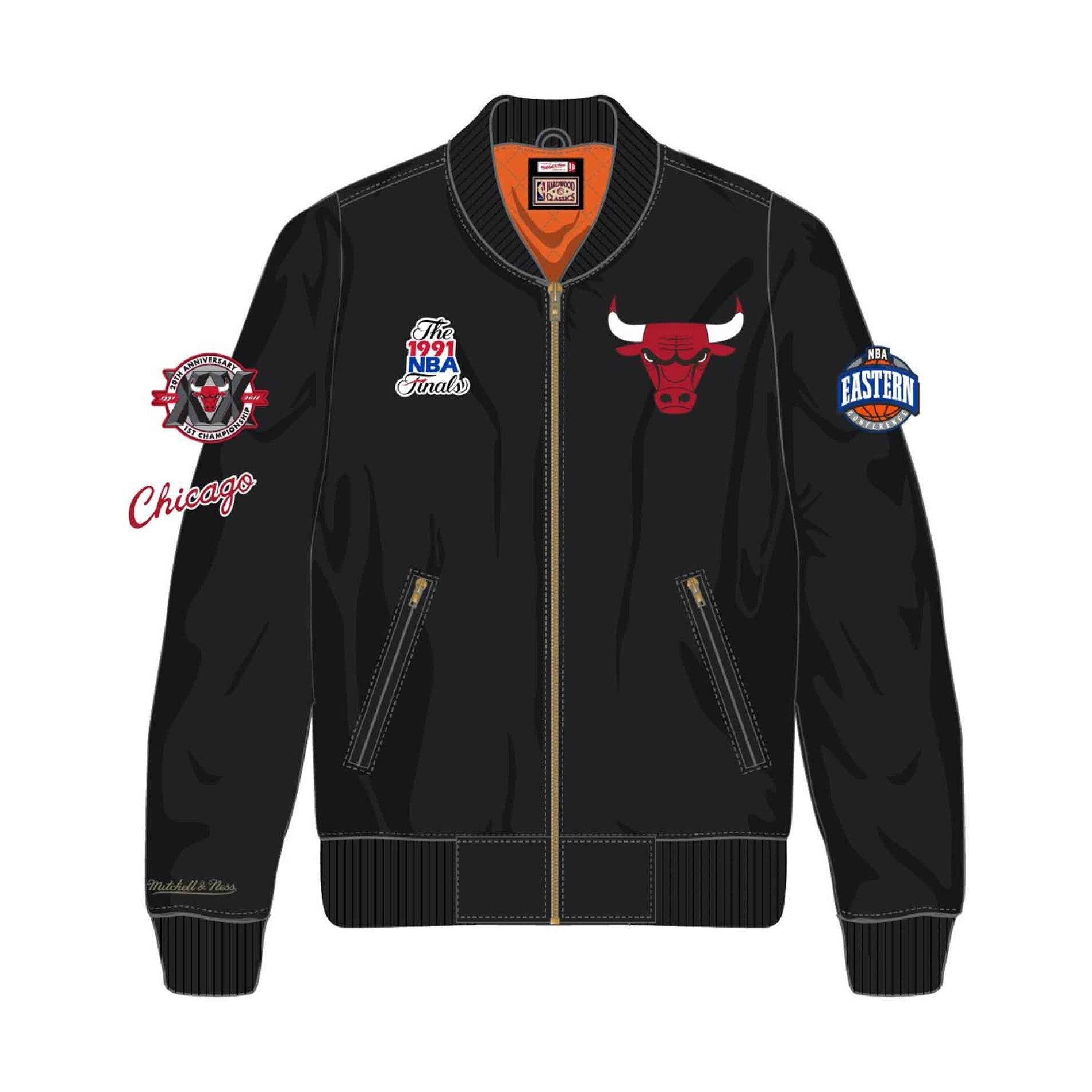 Satin NBA Flight Chicago Bulls NBA Finals 1991 bomberjacka med broderade patchar på ärmarna. 2 sidofickor med dragkedja. 100% polyester