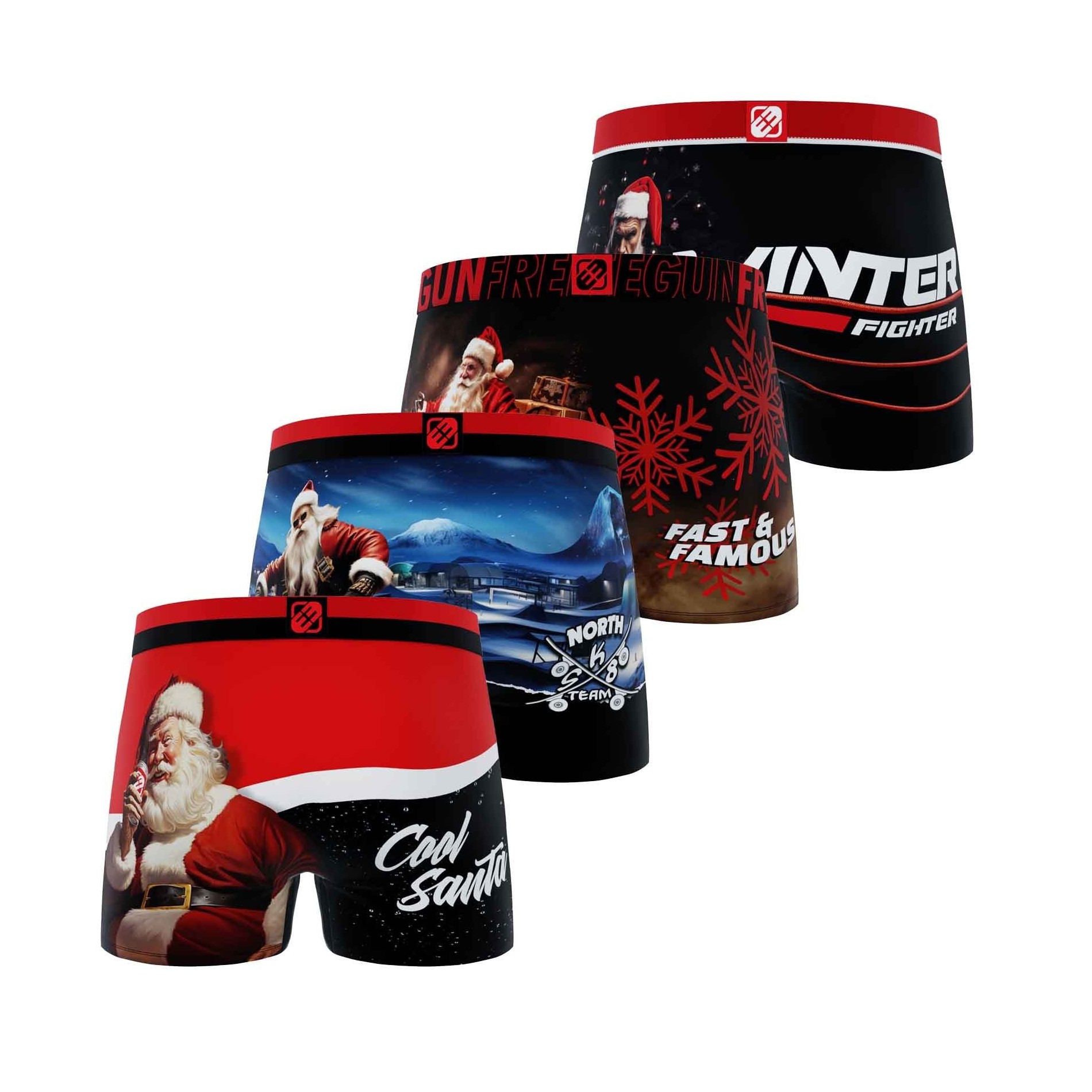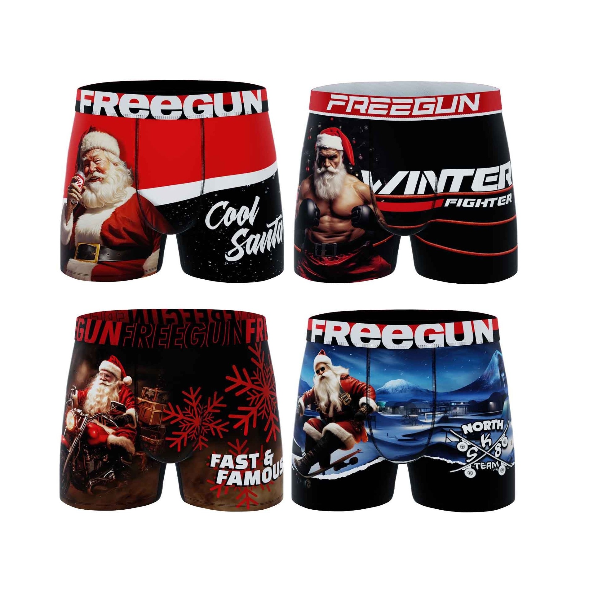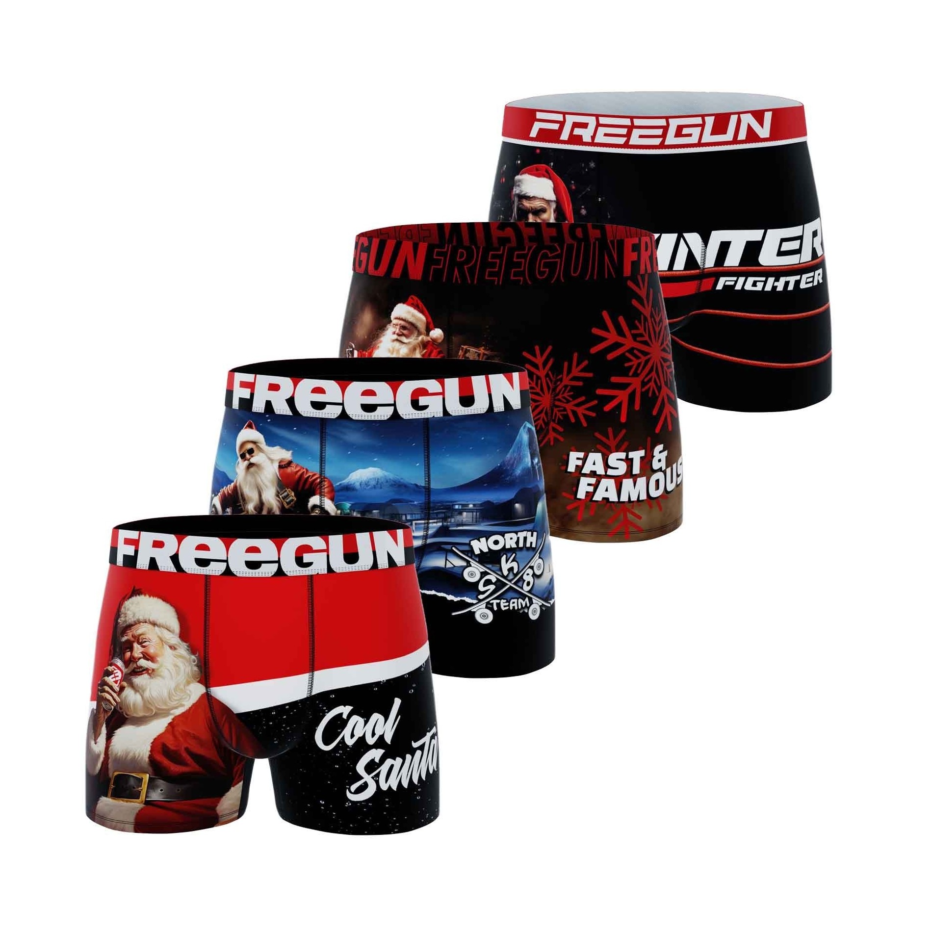 Set med 4 FREEGUN julboxershorts för män. Det är en bra presentidé för slutet av åretOfficiell FREEGUN-boxareBroderat elastiskt bälte och en patch på baksidan FreegunOlika modeller att välja mellanJulspecialsamlingBekväm boxer i mikrofiber