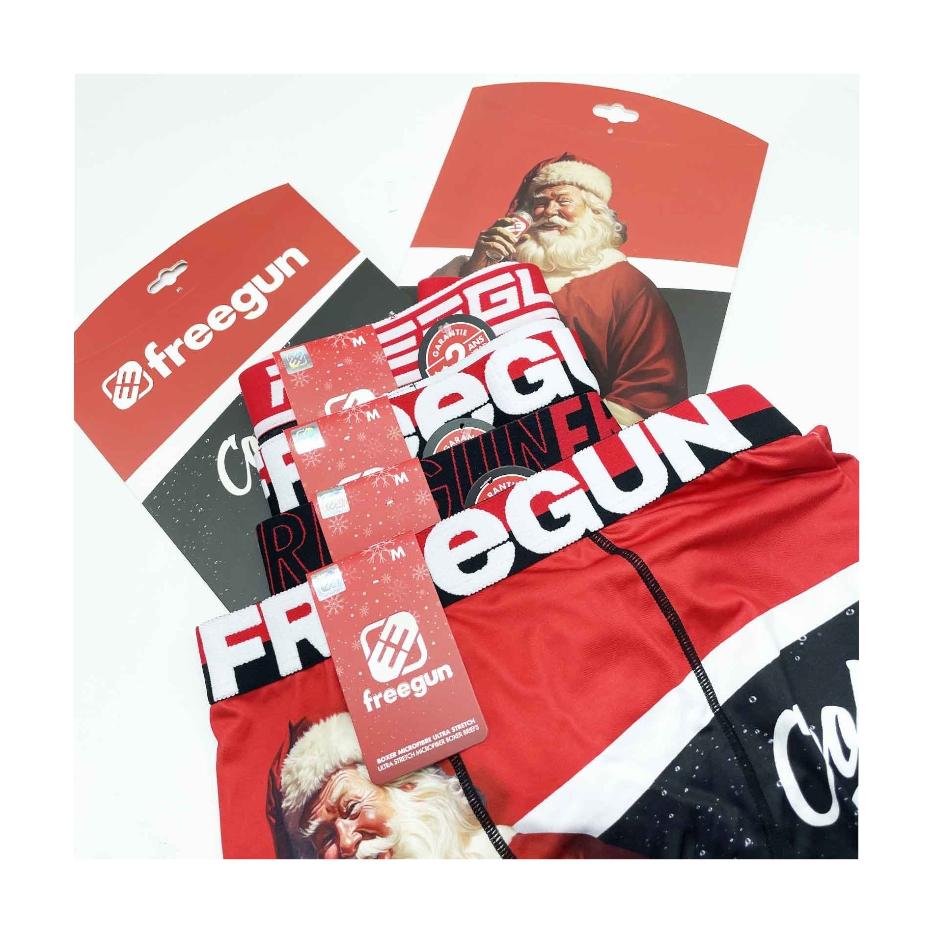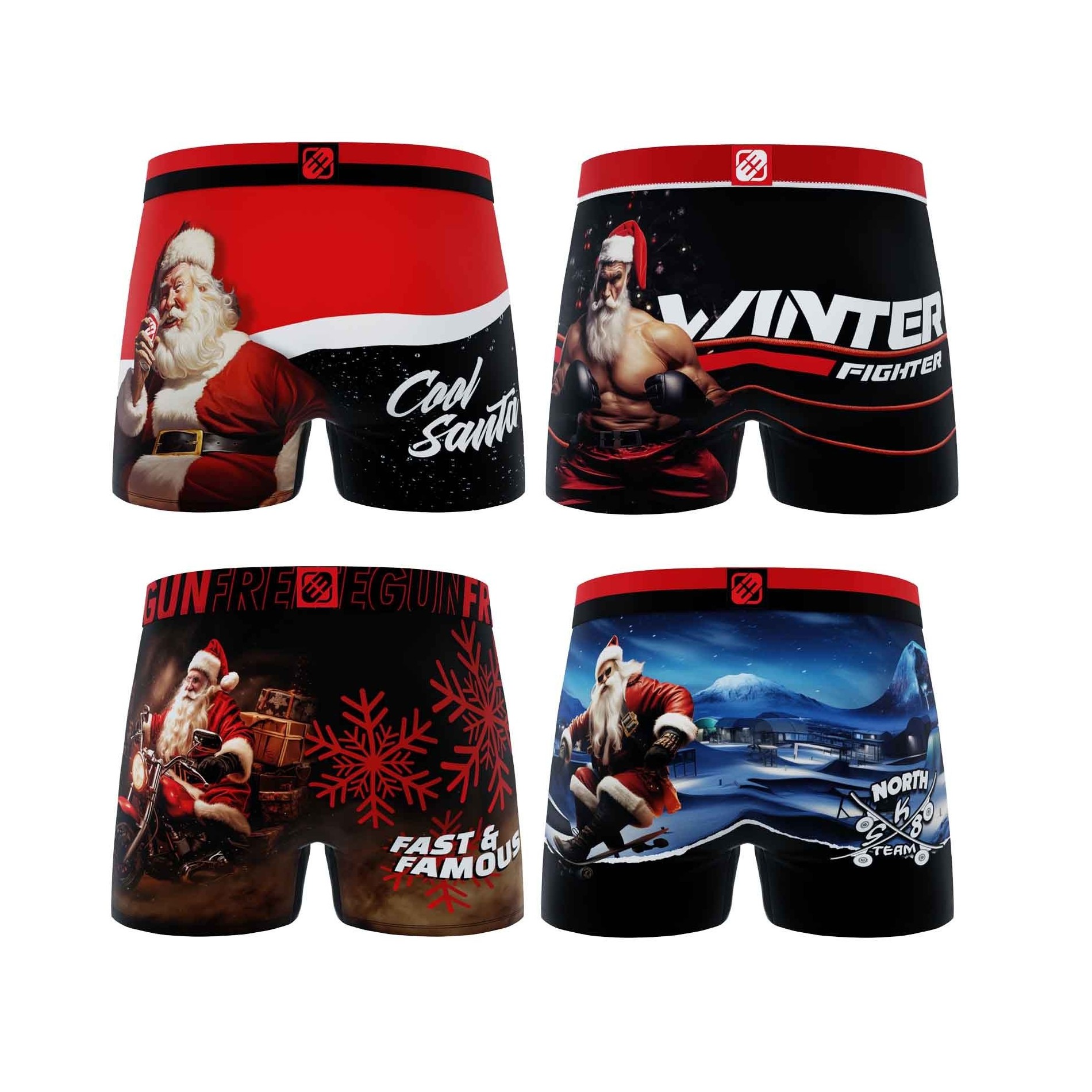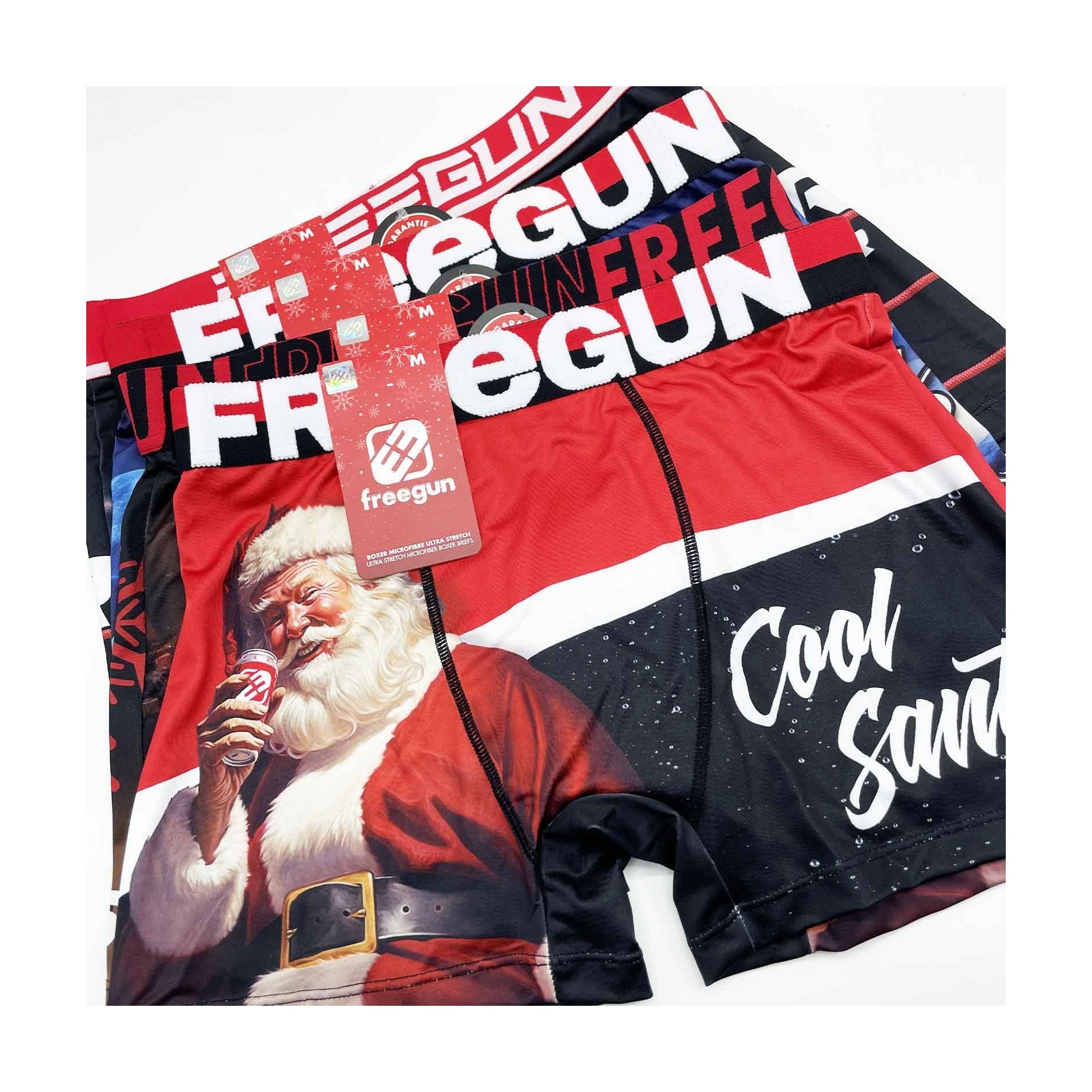 Set med 4 FREEGUN julboxershorts för män. Det är en bra presentidé för slutet av åretOfficiell FREEGUN-boxareBroderat elastiskt bälte och en patch på baksidan FreegunOlika modeller att välja mellanJulspecialsamlingBekväm boxer i mikrofiber