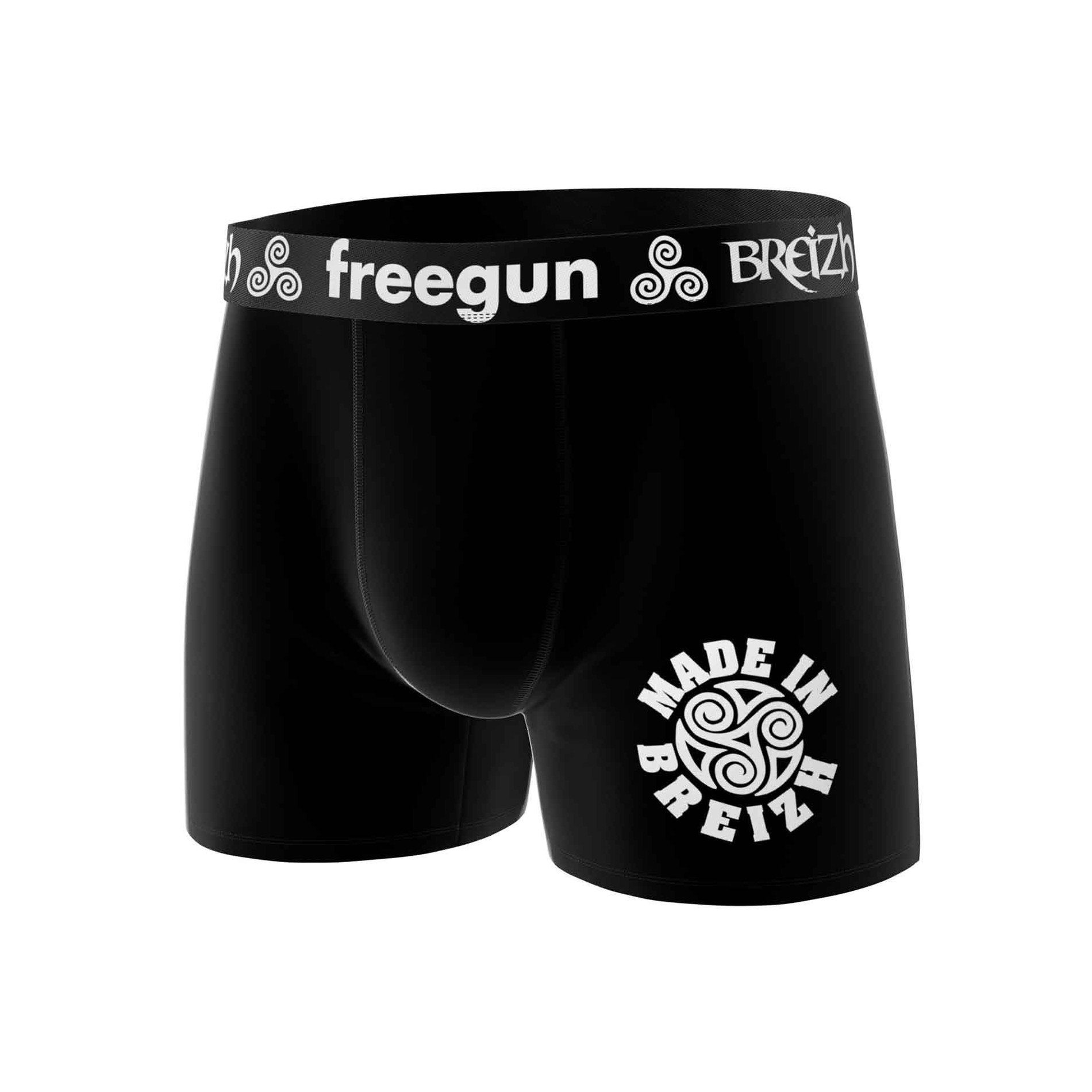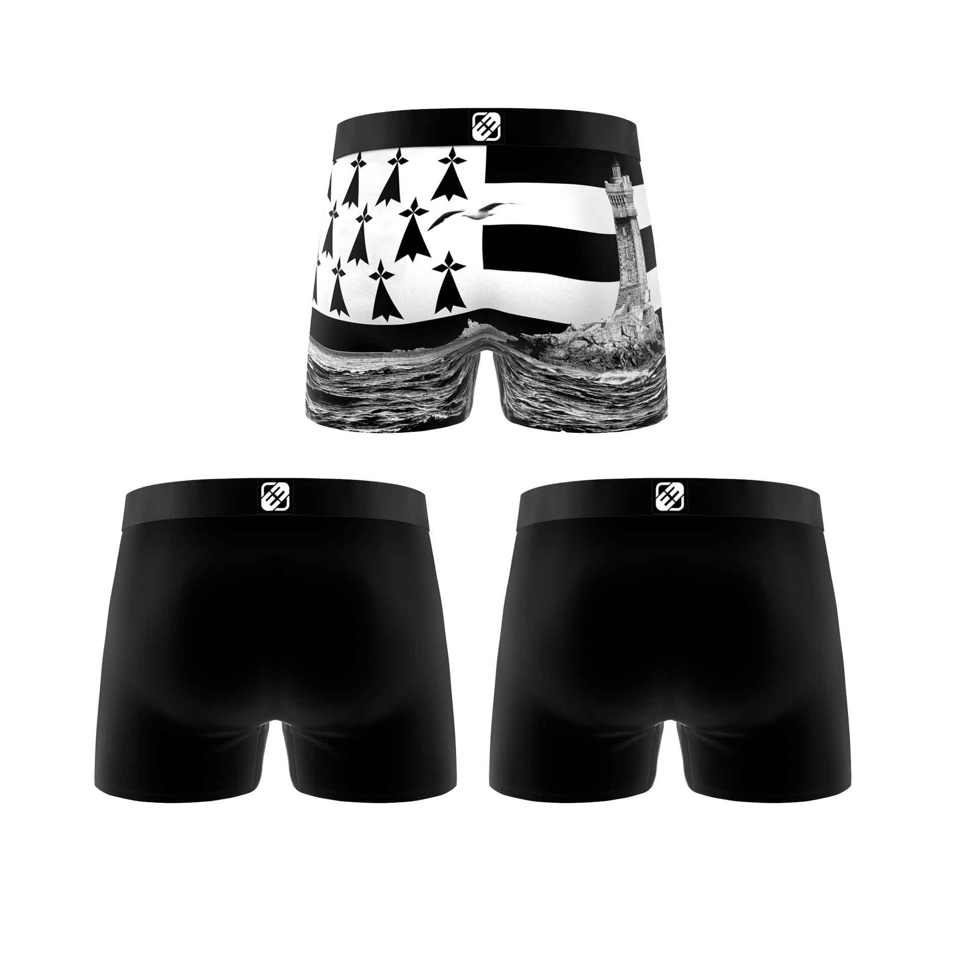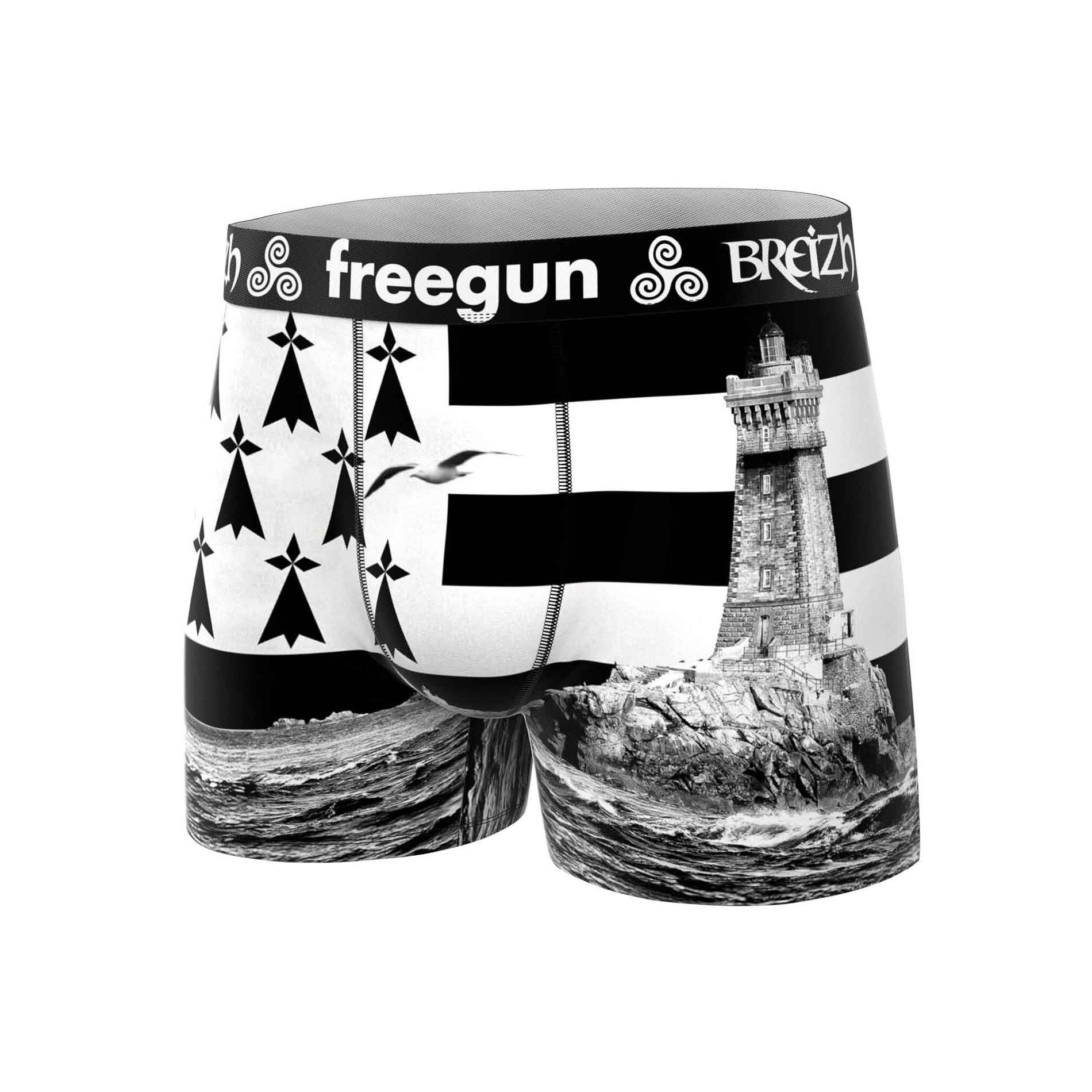 Set med 3 FREEGUN mikrofiberskalsonger för män med tema "Bretagne". Insamlingsregion i Frankrike, med Bretagne. 92% polyester, 8% elastan