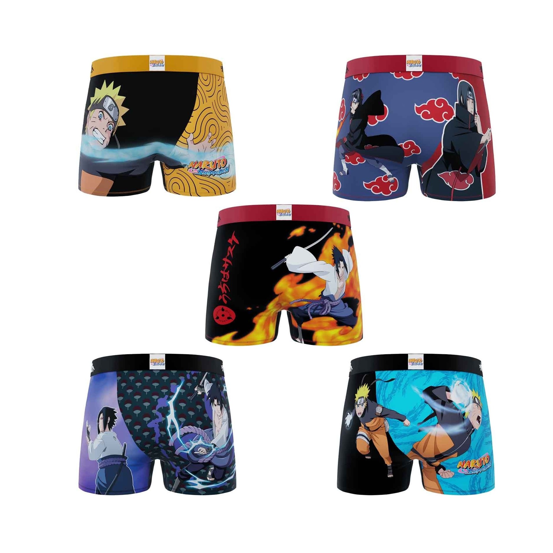 Lpt av 5 FREEGUN x Naruto Official Licensed Men's Boxer Briefs, mikrofiber, mycket bekväm. 92% Polyester 8% Elastan