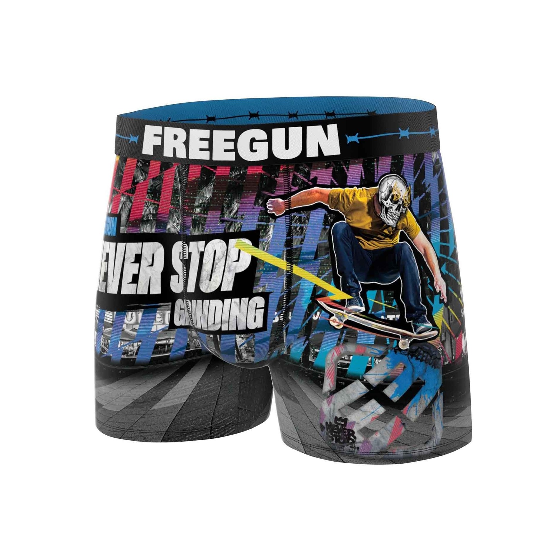 Ny FREEGUN-kollektion av boxershorts för män med teckningar som representerar extrema sporter, som motocross, fotboll, skateboarding, snowboarding, streetball, etc...