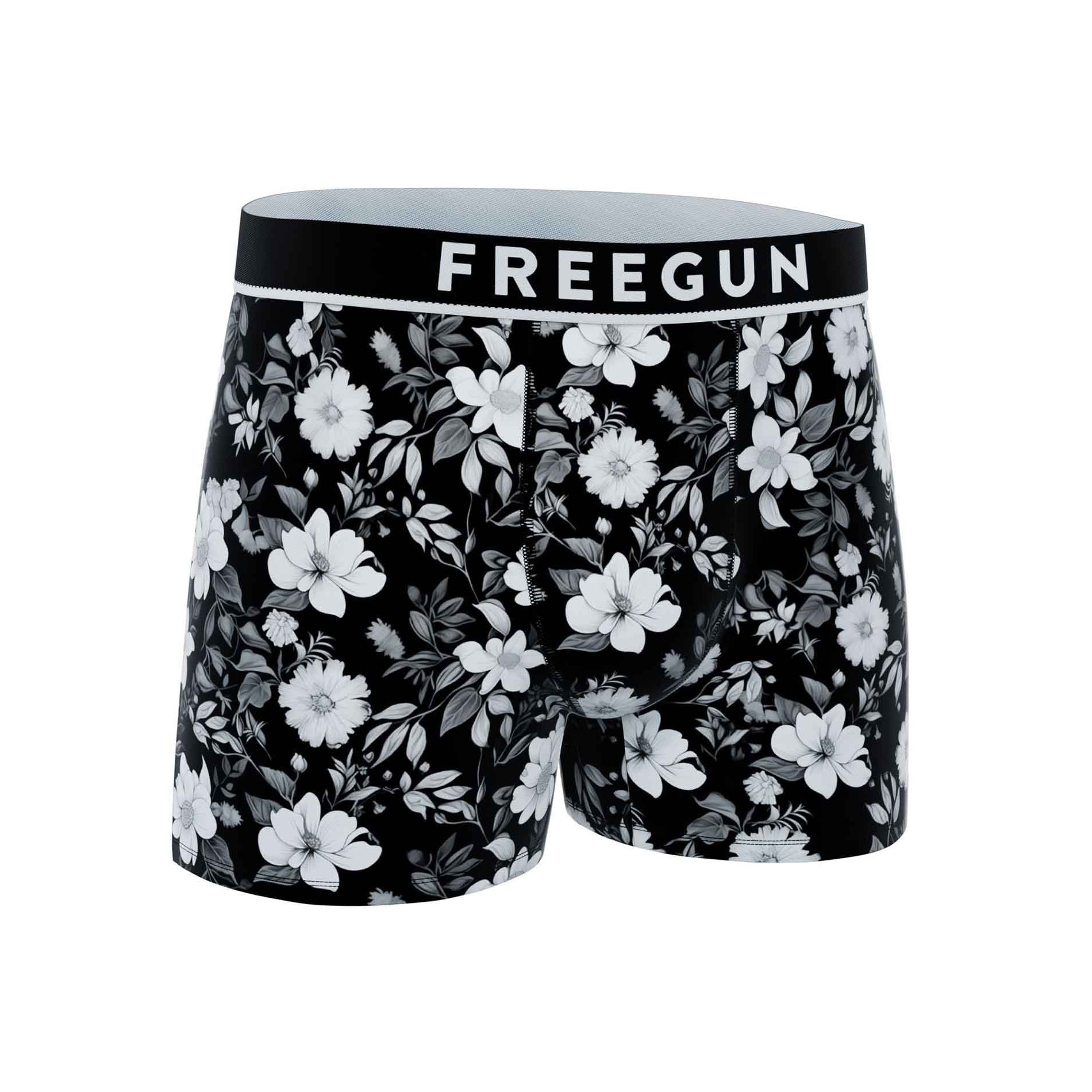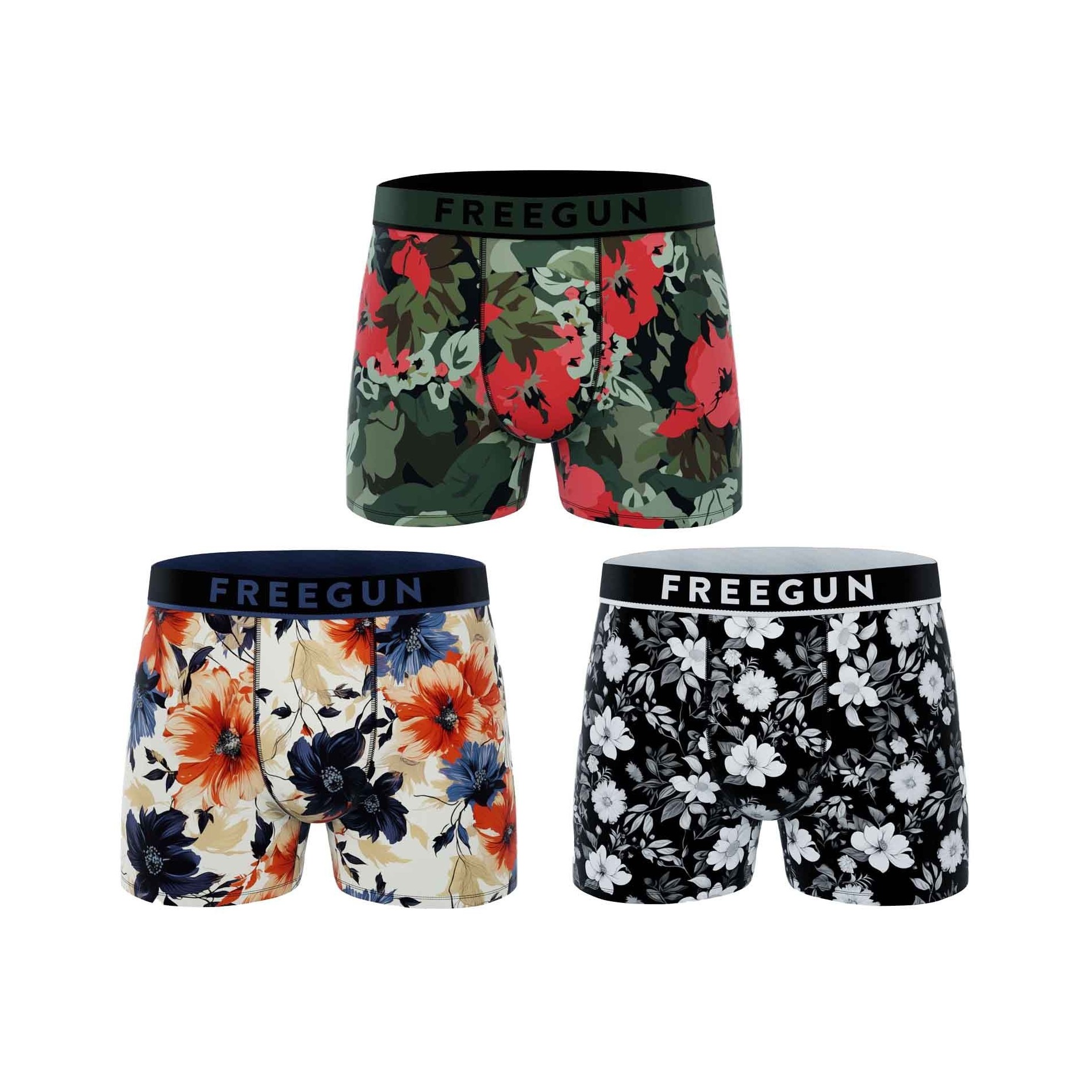 Set med 3 FREEGUN Boxershorts för män i premiumbomull "Premium Signature Flowers" Collection - FREEGUN Wide Elastic Stretch Waistband. - 92% polyester 8% elastan / Foder 100% bomull