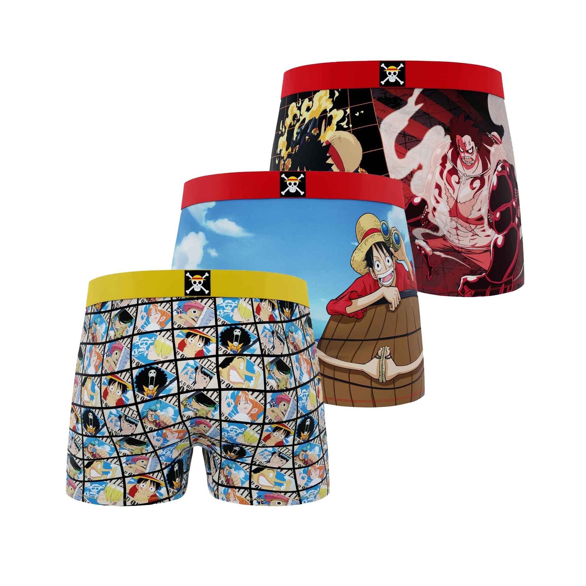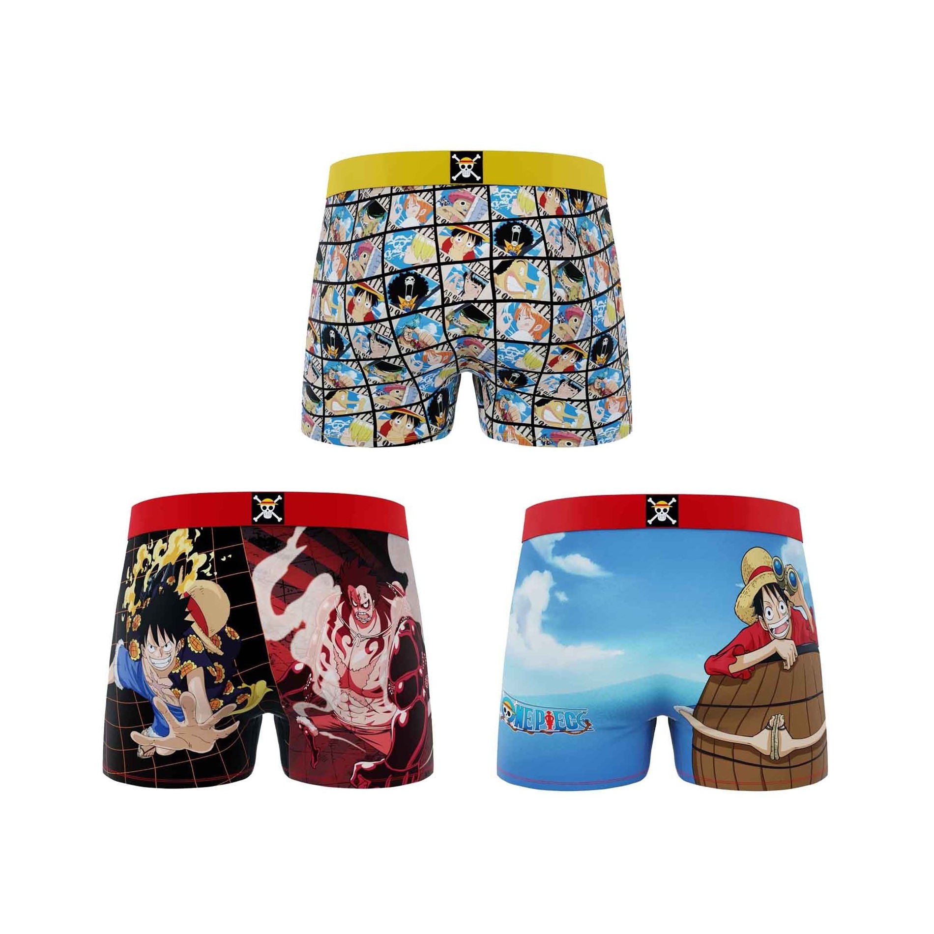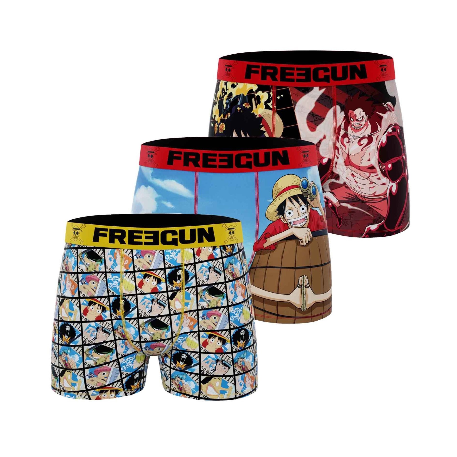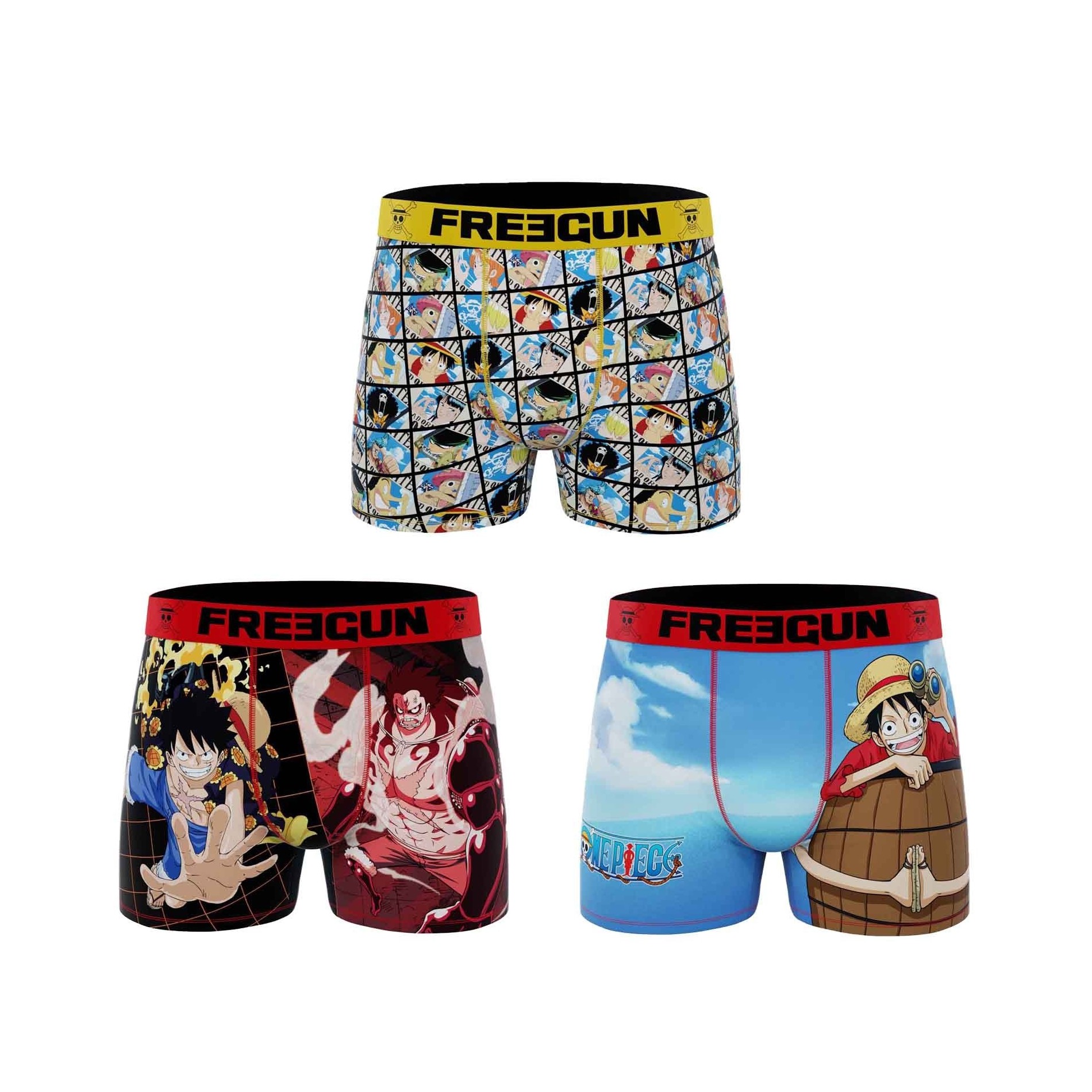 Set om 3 FREEGUN Officiellt licensierade One Piece-boxershorts för män, med Monkey D. Luffy och Zoro. 92% polyester 8% elastan