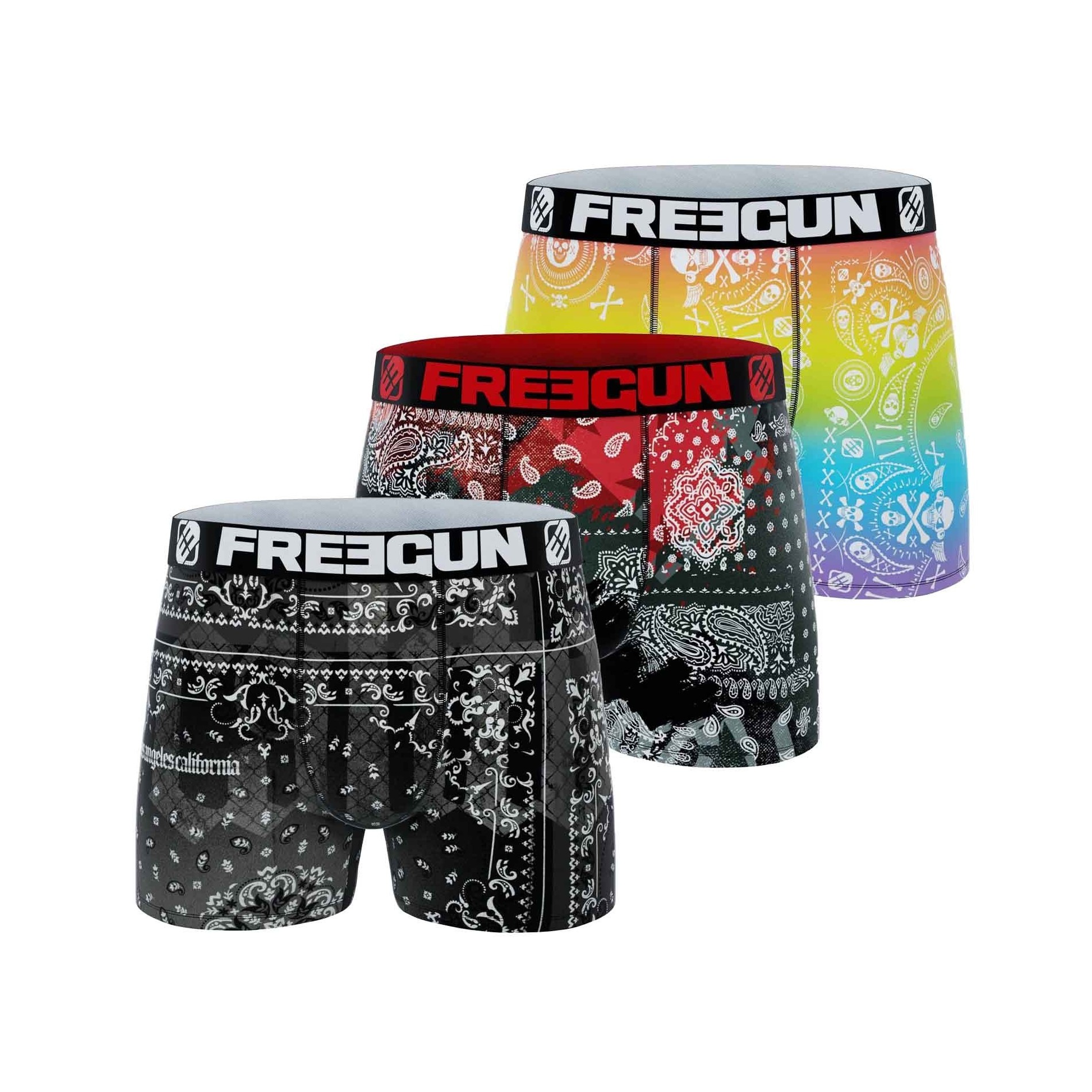 FREEGUN 3-pack Men's Microfibre Bandana Pack Boxers är ett set som är speciellt anpassat för bandana-mode. Detta paisleymönster är ett indiskt motiv som ofta trycks på sjalar, carvats eller andra näsdukar. Yttertyg 92% polyester och 8% elastan. Foder 100% bomull.