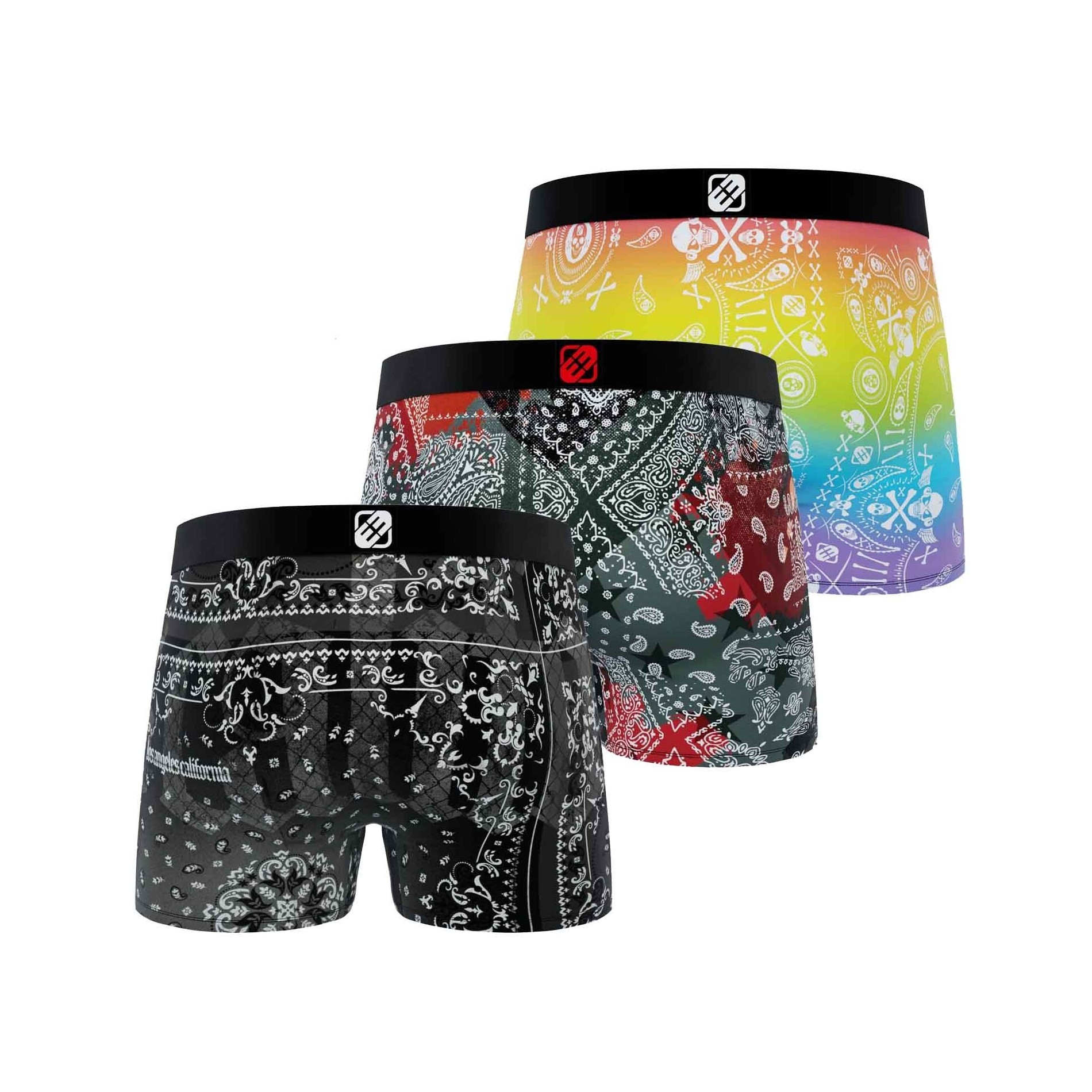 Förpackning med 3 boxershorts bestående av Bandana Gang, LA och Psychedelic.