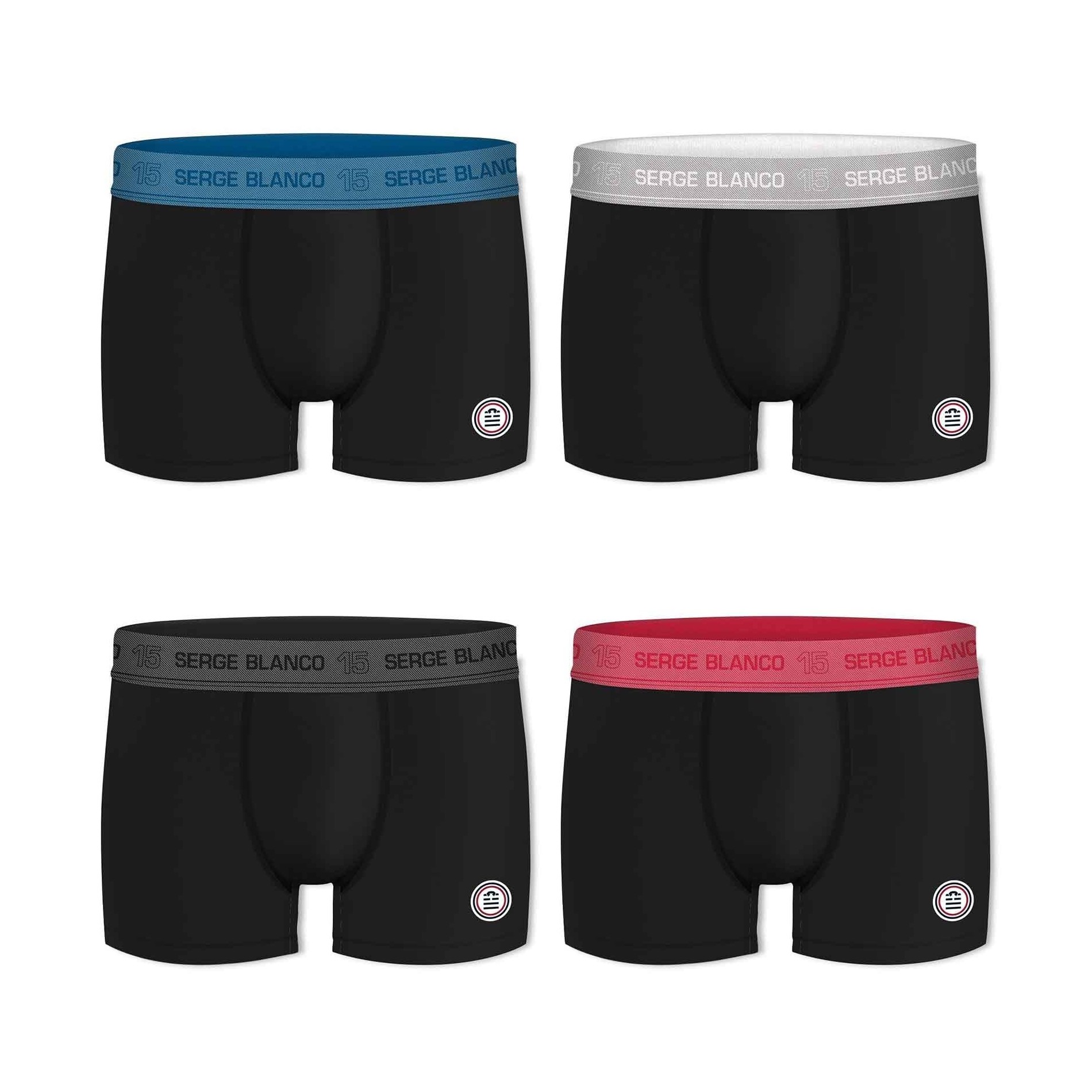 Set om 4 SERGE BLANCO Hype COLLECTION-boxerkalsonger i bomull för män - Serge Blanco Bred elastisk midjeresår i stretch - 95% bomull och 5% polyester