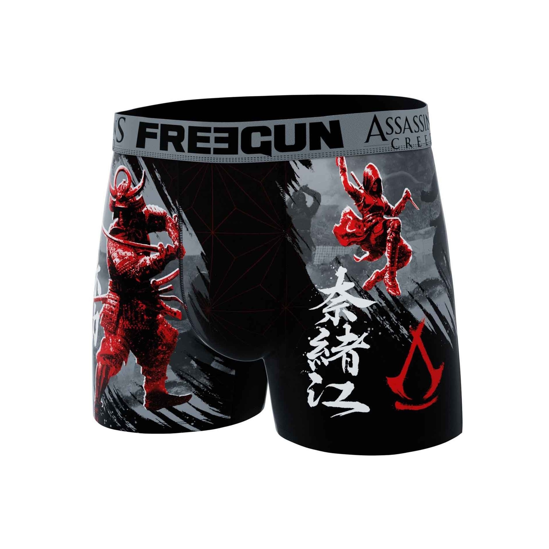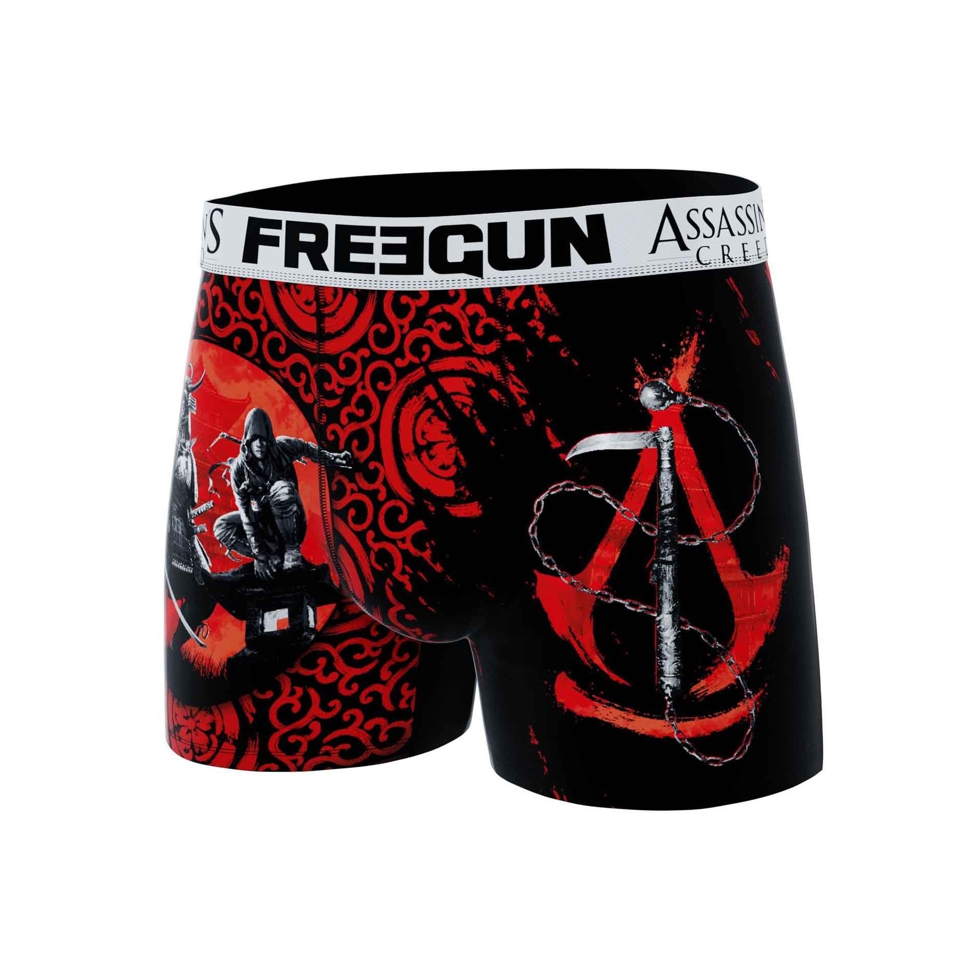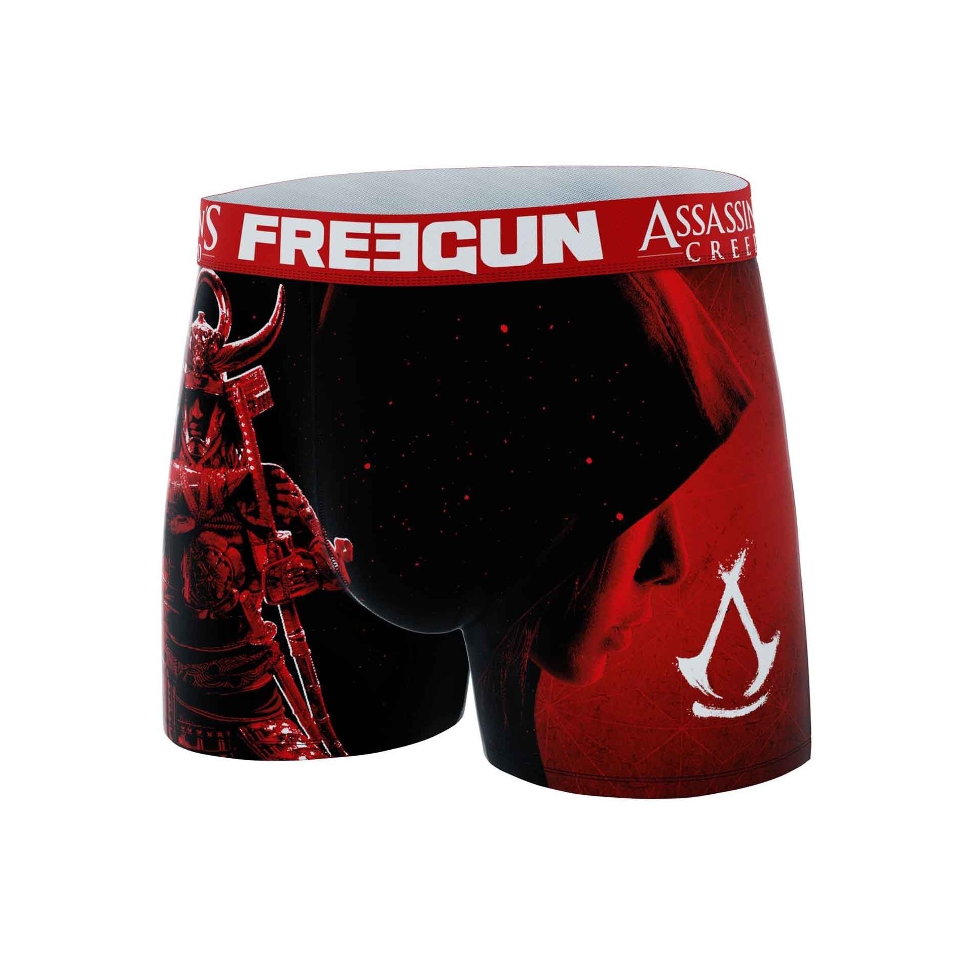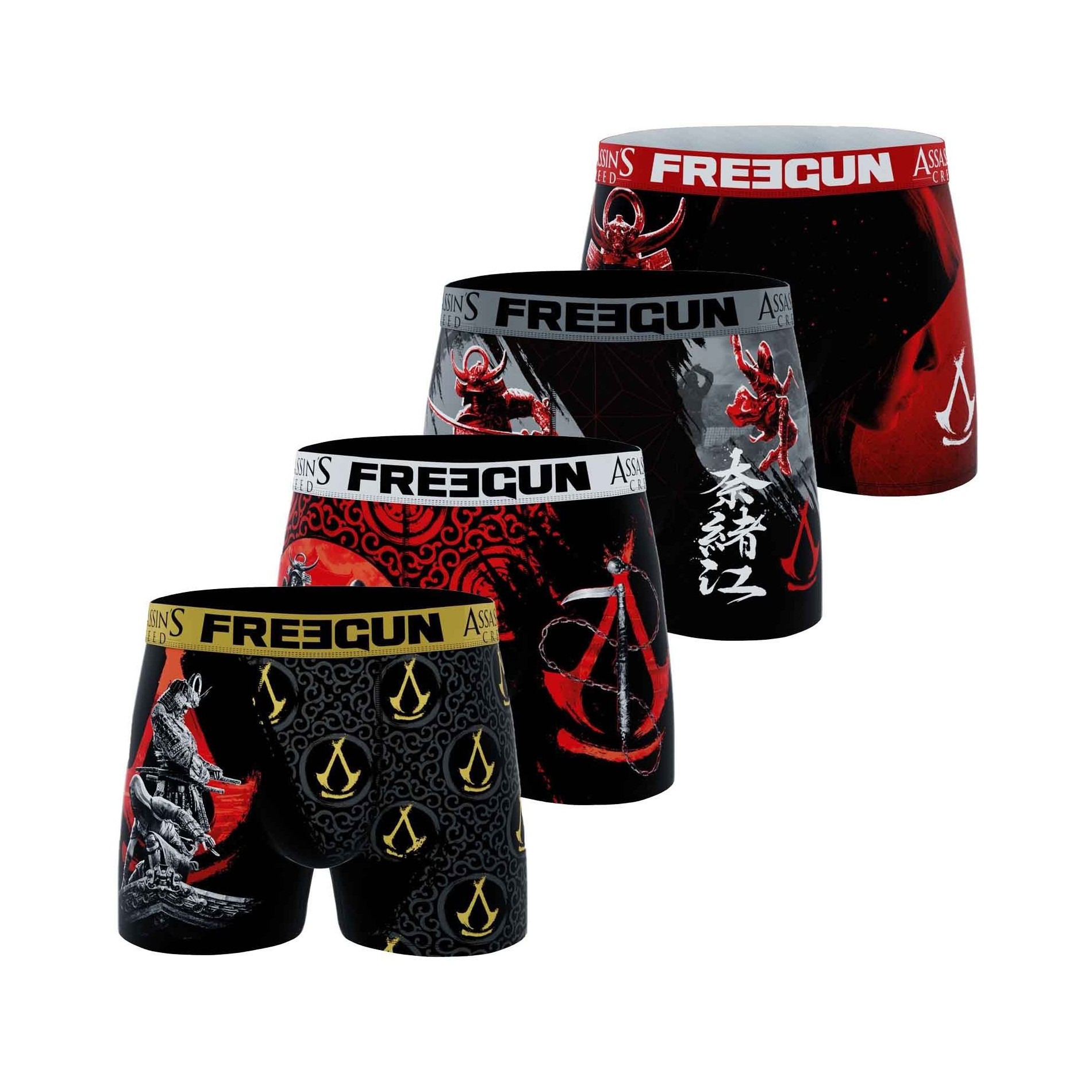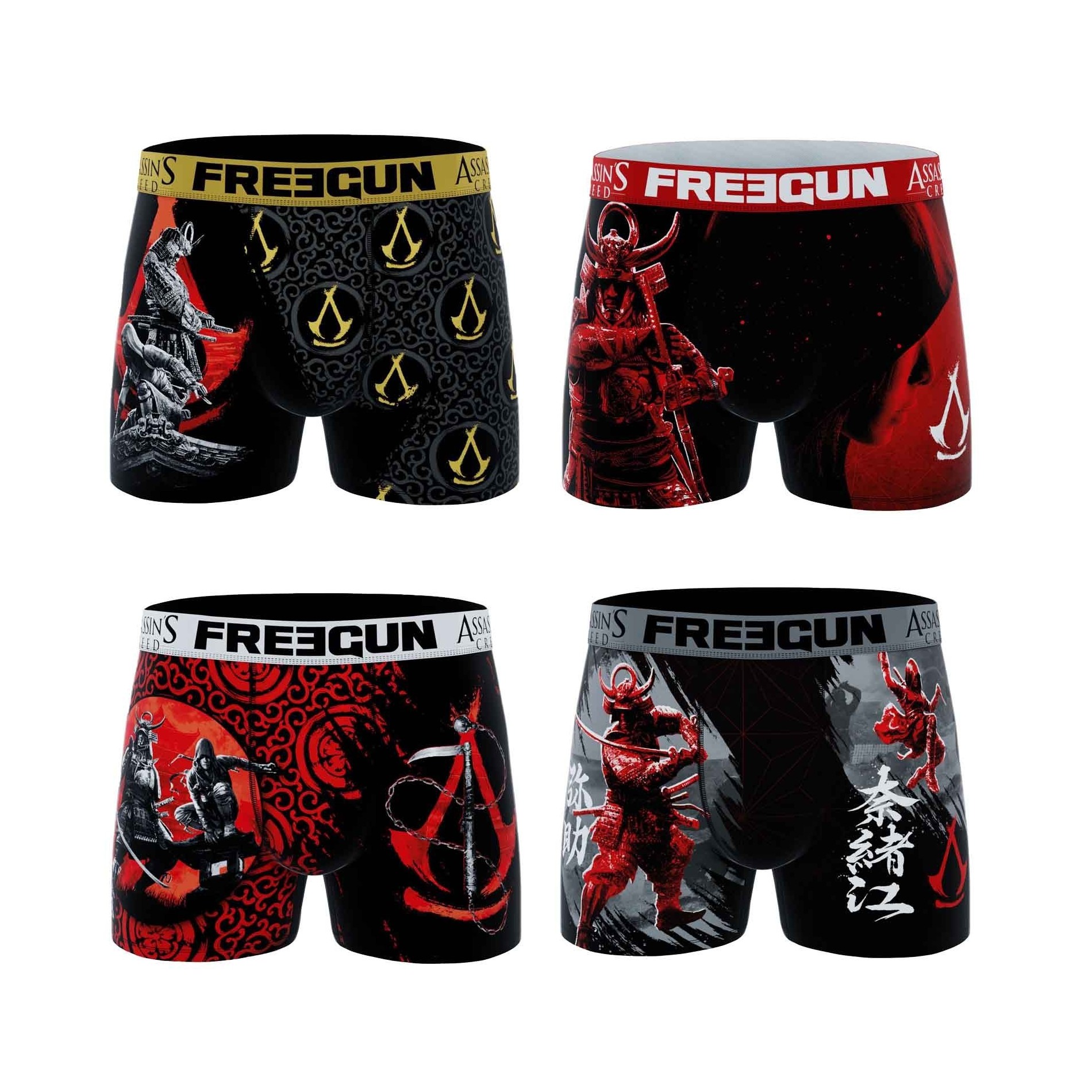 Freegun Set med 4 boxershorts för män i mikrofiber från det senaste FREEGUN x ASSASSIN'S CREED-samarbetet för lanseringen av The Shadows Game. 92% polyester och 8% elastan