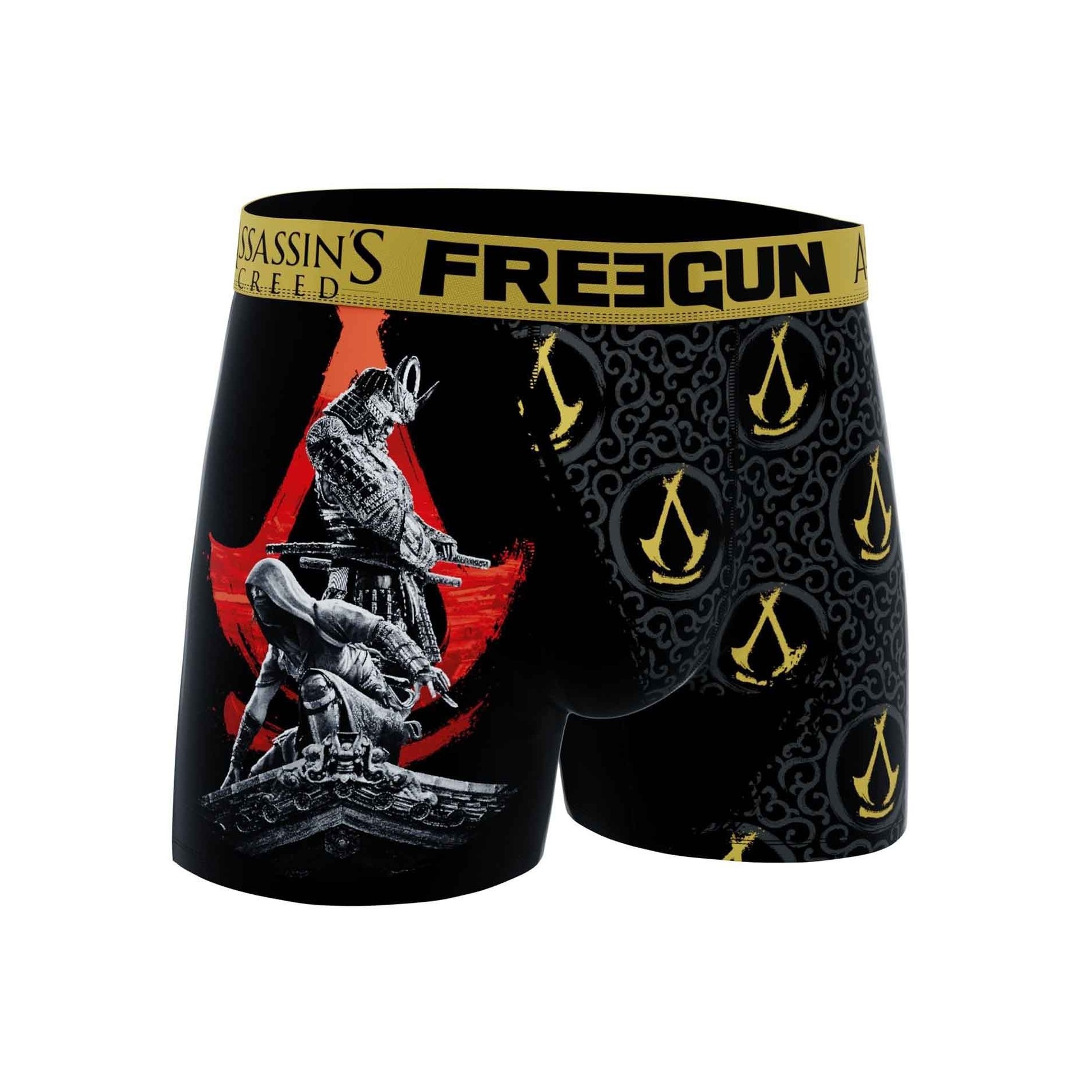 Set med 4 FREEGUN-boxershorts för män i mikrofiber, FREEGUN x ASSASSIN'S CREED-samarbete.