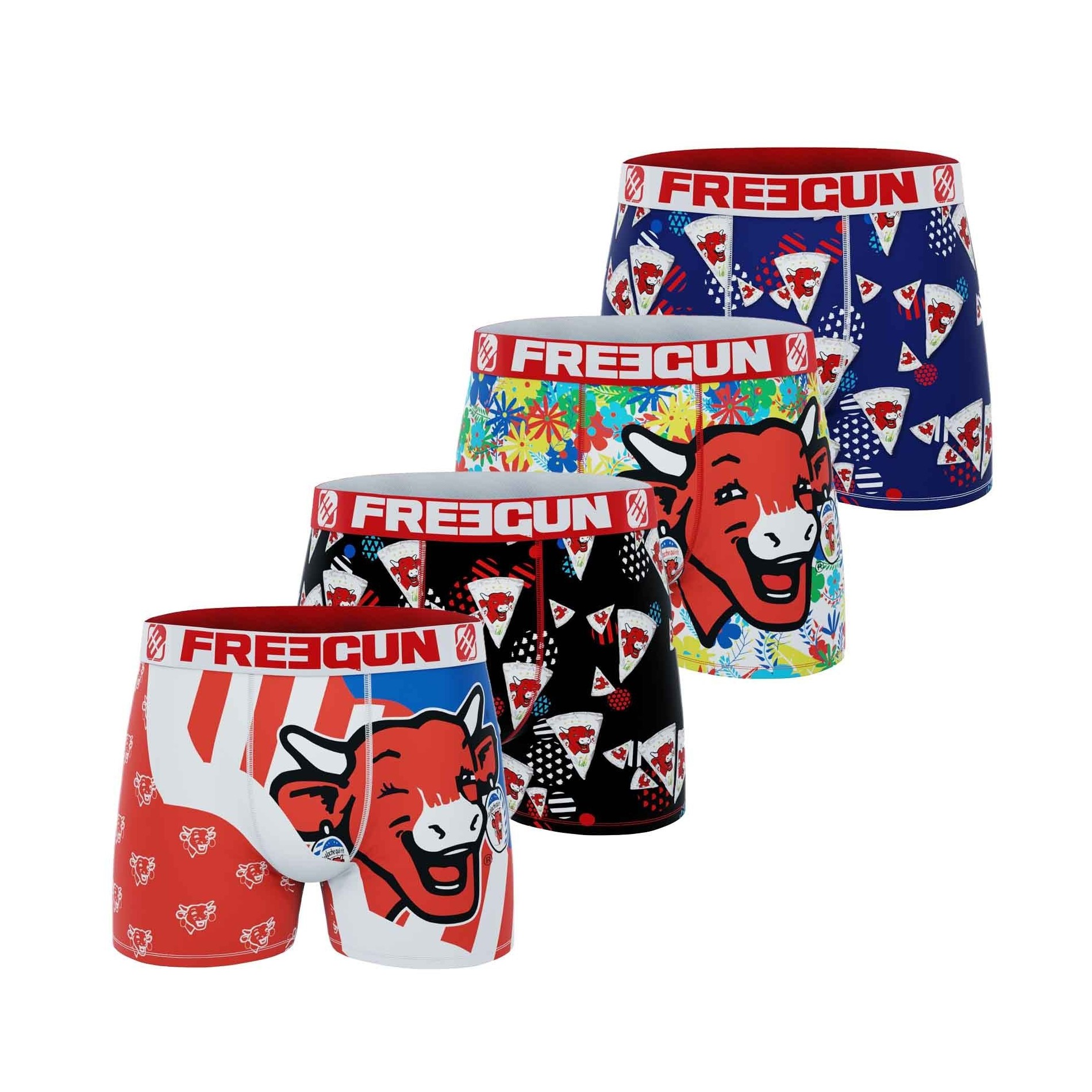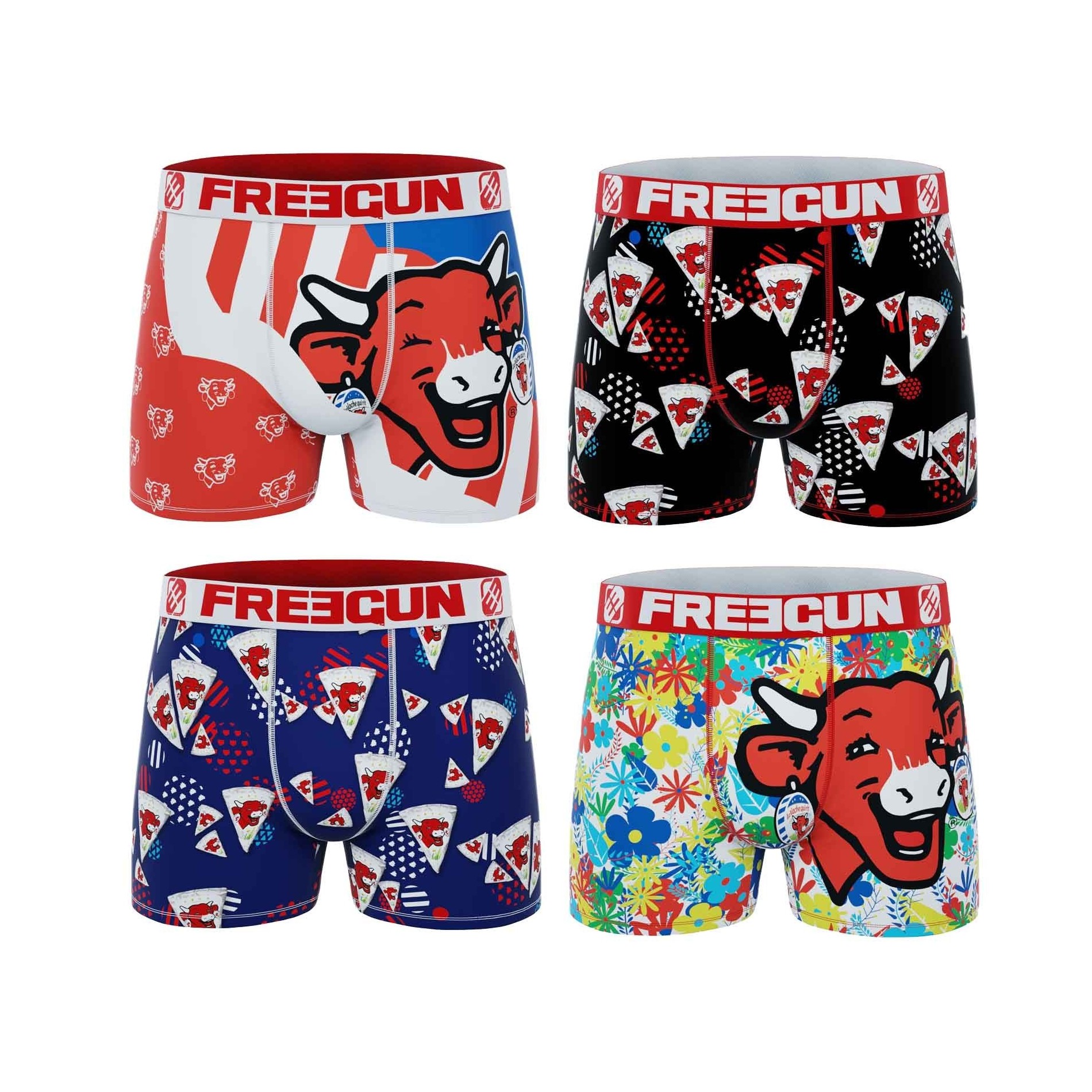 FREEGUN Set med 4 mikrofiberboxershorts "The Laughing Cow" för män