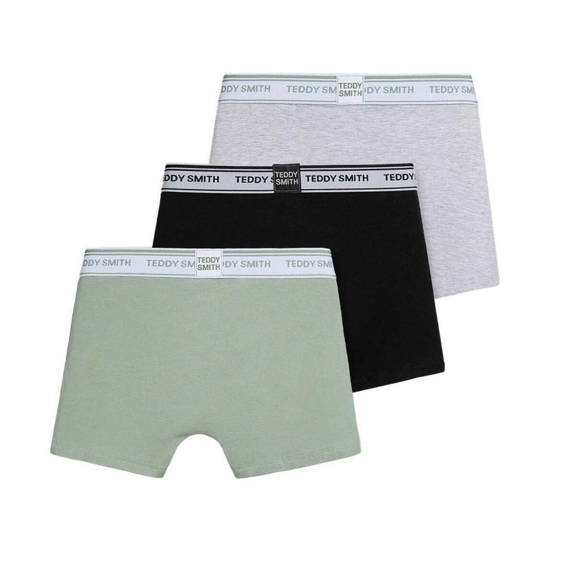 Förpackning med 3 st Teddy Smith boxershorts i bomull med stretch. Färger: khaki, svart, melerad grå, märkeslinning, smal passform. Andningsbar komfort till bästa pris.