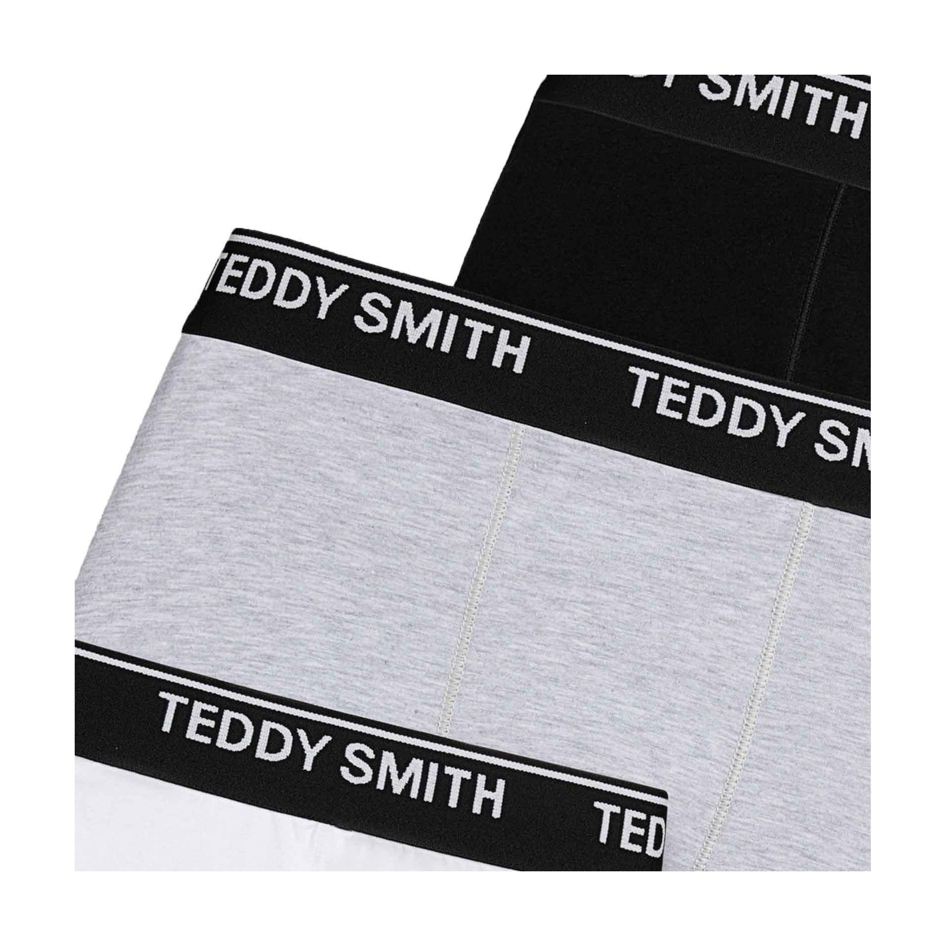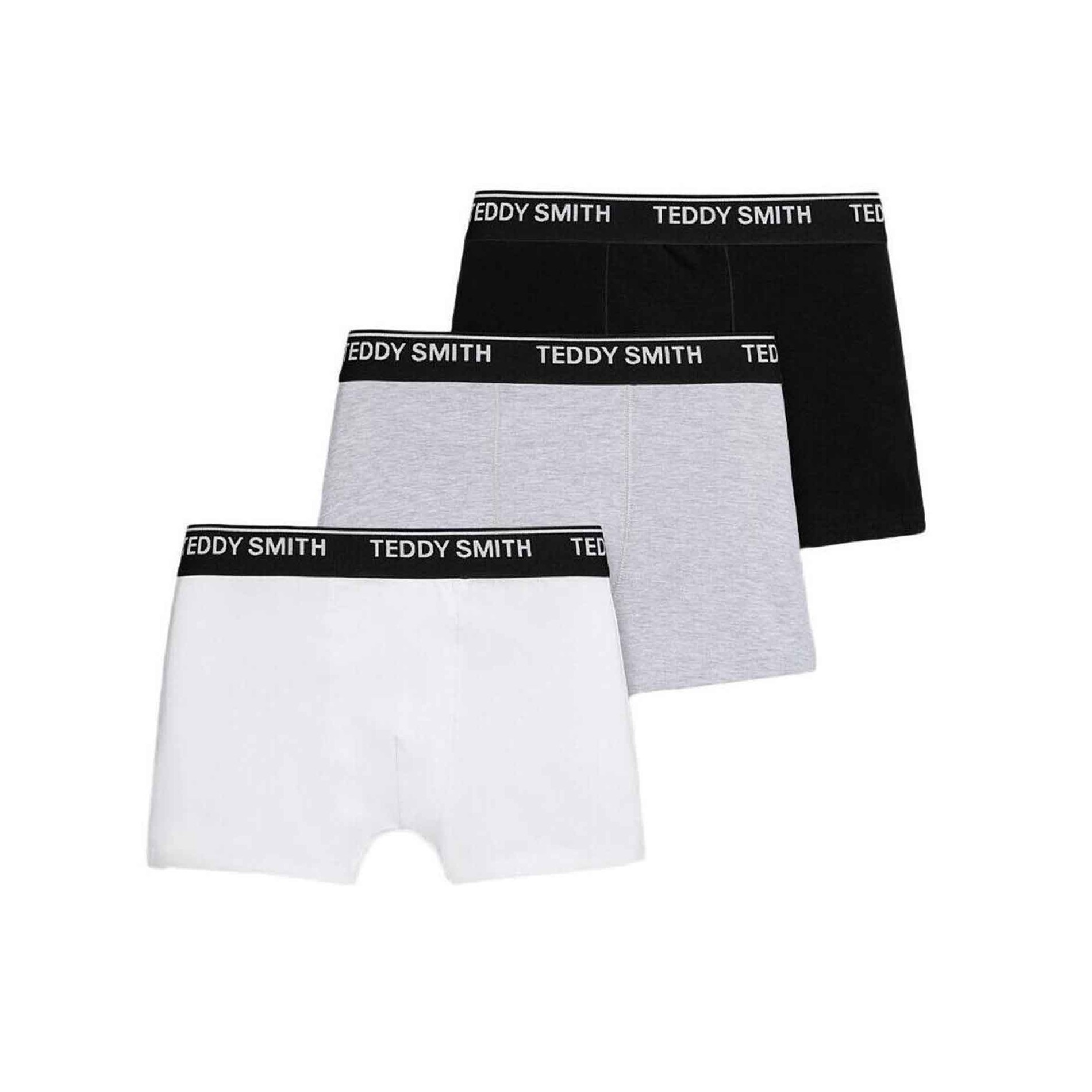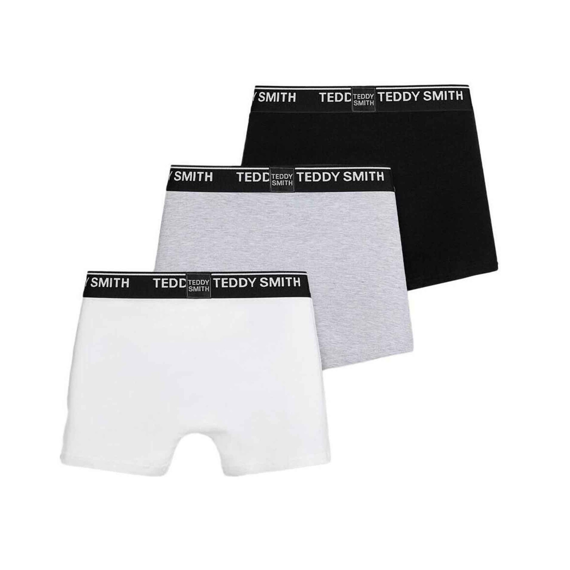 Förpackning med 3 st Teddy Smith boxershorts i bomullsstretch. Vit, gråmelerad, svart, märkesband i midjan, smal passform. Andningsbar komfort till bästa pris.