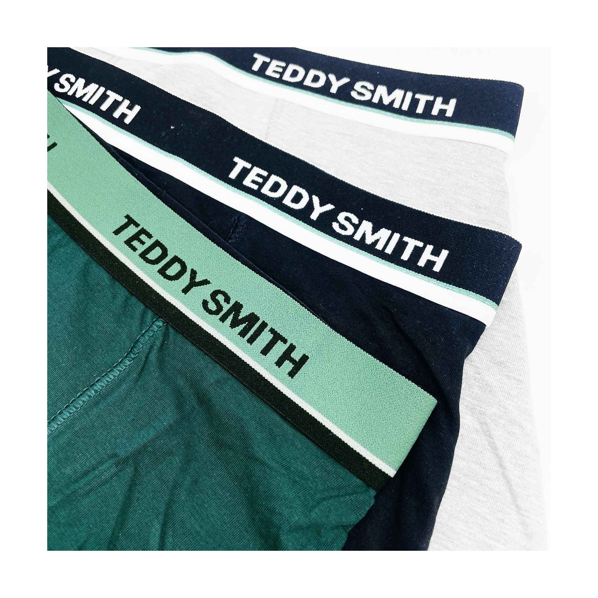 Trio av Teddy Smith-boxershorts i mjuk bomull som andas och ger komfort i vardagen. De finns i mörkgrönt, gråmelerat och svart och har en smal passform som inte trycker ihop, en stretchig passform och en elastisk linning med TEDDY SMITH-logotyp. Perfekta både under jeans och för arbetsdagen.