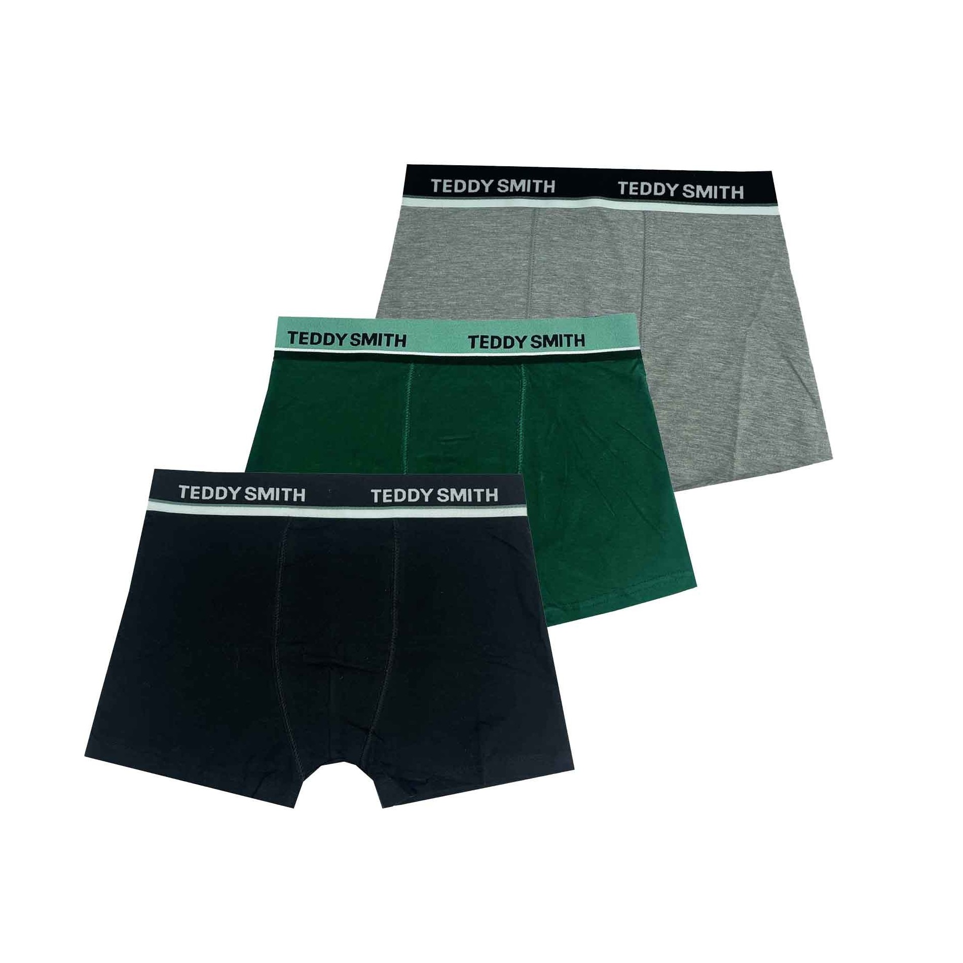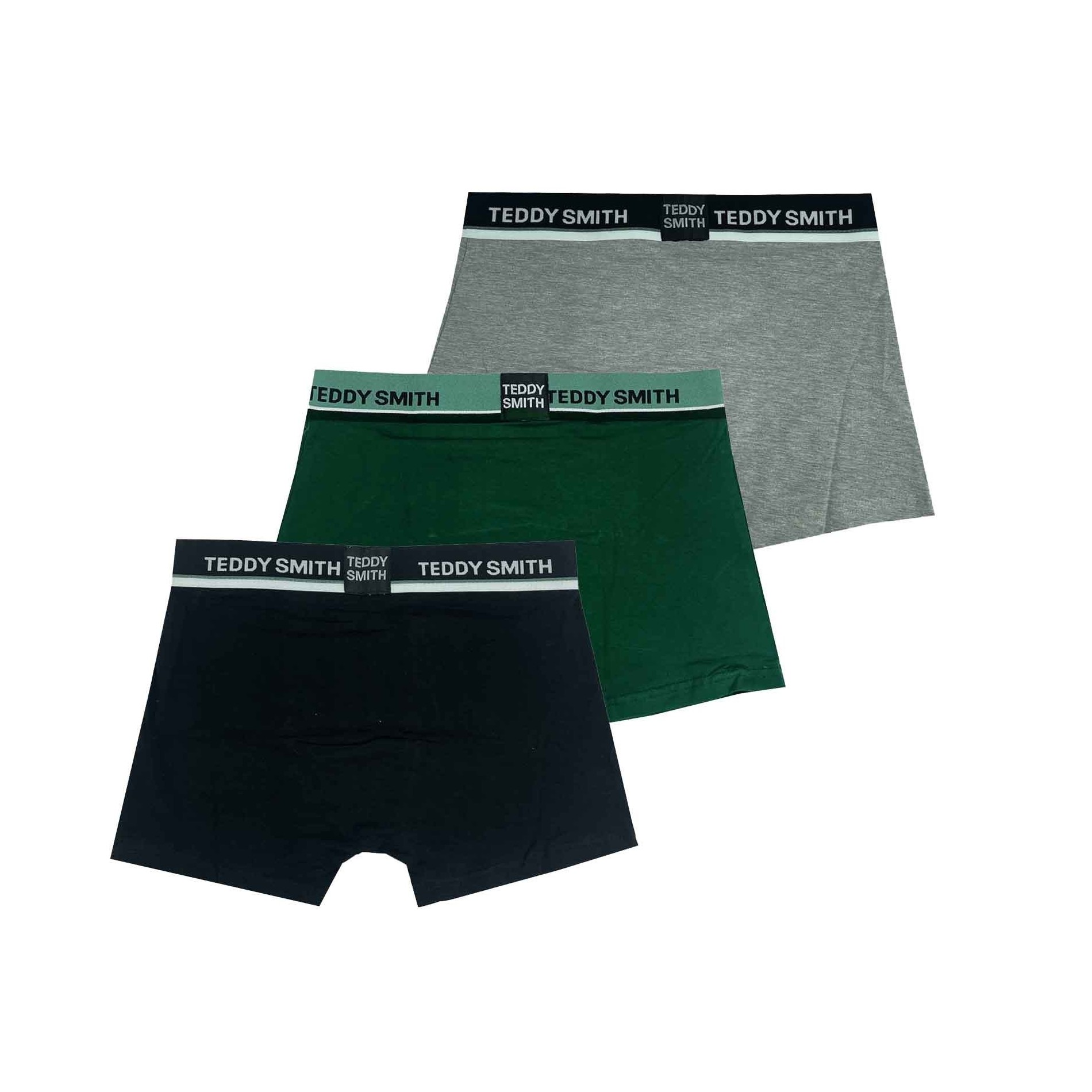 Set om 3 Teddy Smith herrboxershorts i mjuk bomull som andas (grön, gråmelerad, svart). Tight passform med stretchstöd, elastisk midjeresår som håller sig på plats och diskreta sömmar för komfort i vardagen. Lättskött i 30°C