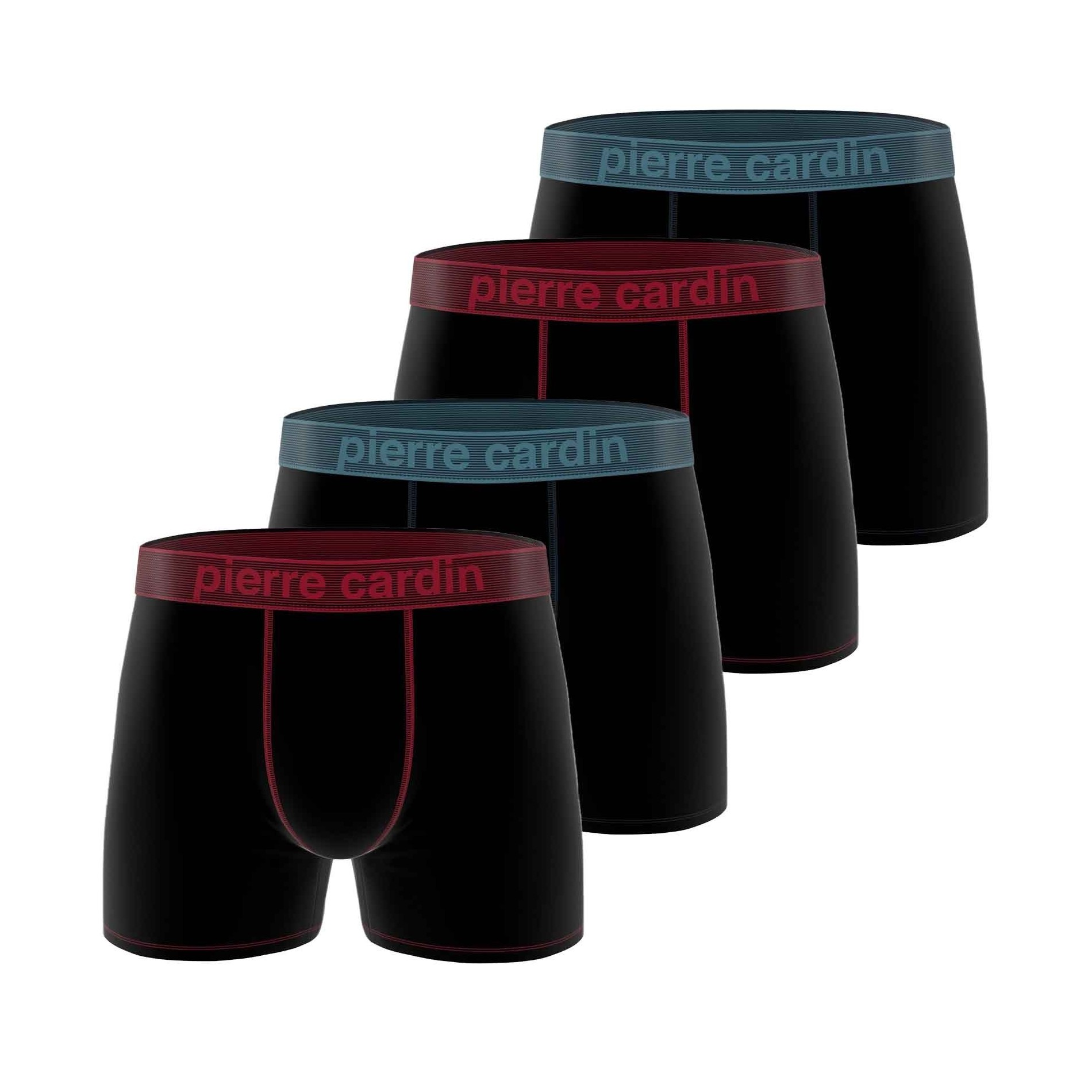 Varje byxa har ett jacquardlogobälte Pierre Cardin och platta sömmar för diskret bärande under alla kläder. De 4 svarta modellerna, som framhävs av vinröda/blå bälten, erbjuder en sober, elegant stil - perfekt för arbete, fritid eller resor.