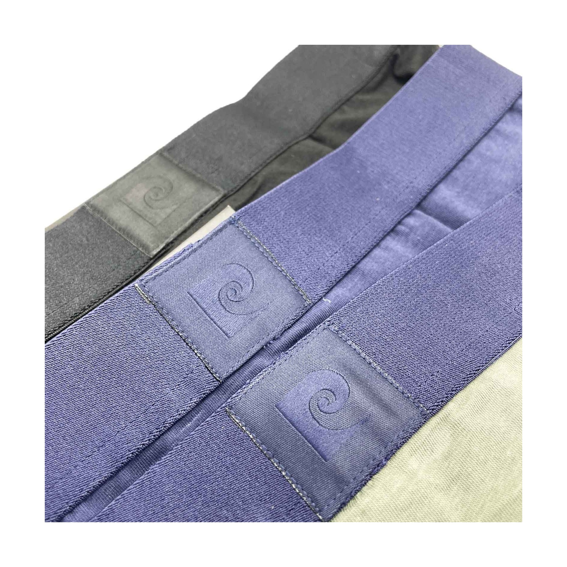 Pierre Cardin -Set om 3 boxershorts "Paolo" i bomull: mjukt tyg som andas, skön stretch, midjeband med ton-i-ton-logotyp. Svart/blå/khaki. Officiell produkt. 95% BOMULL - 5% ELASTHANNE
