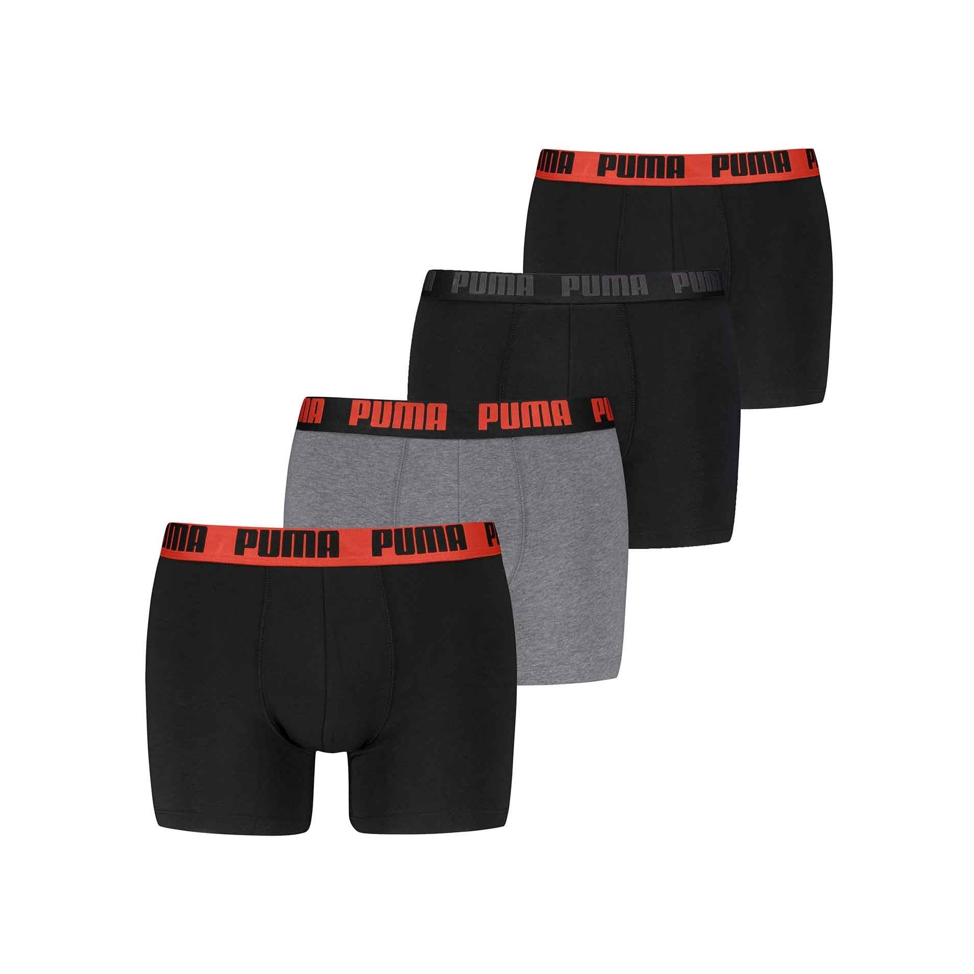 Välj ett set med 4 boxershorts för män PUMA Everyday i ekologisk bomull: bekväm elastisk linning, mjukt, stretchigt tyg, perfekt för optimal komfort i vardagen.
