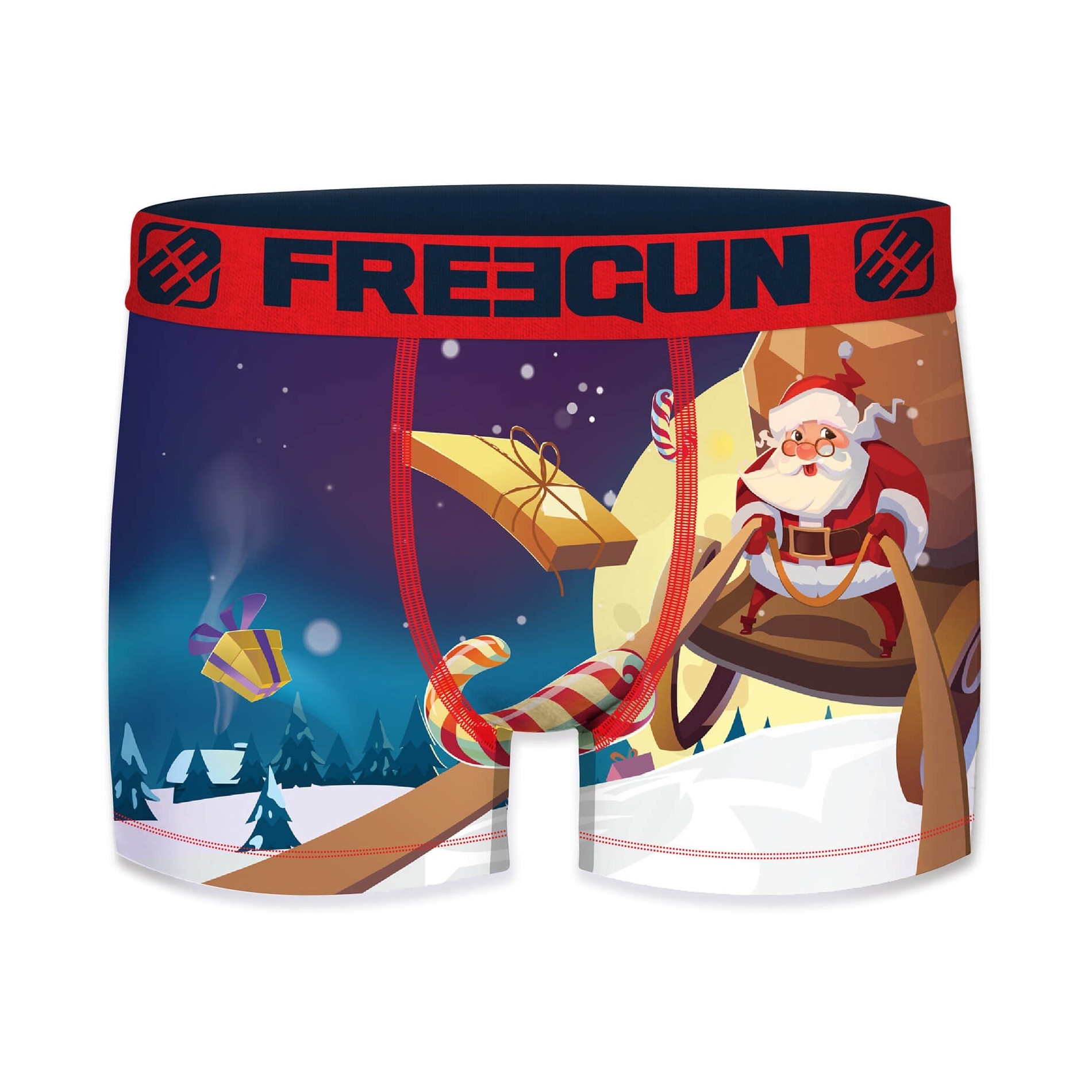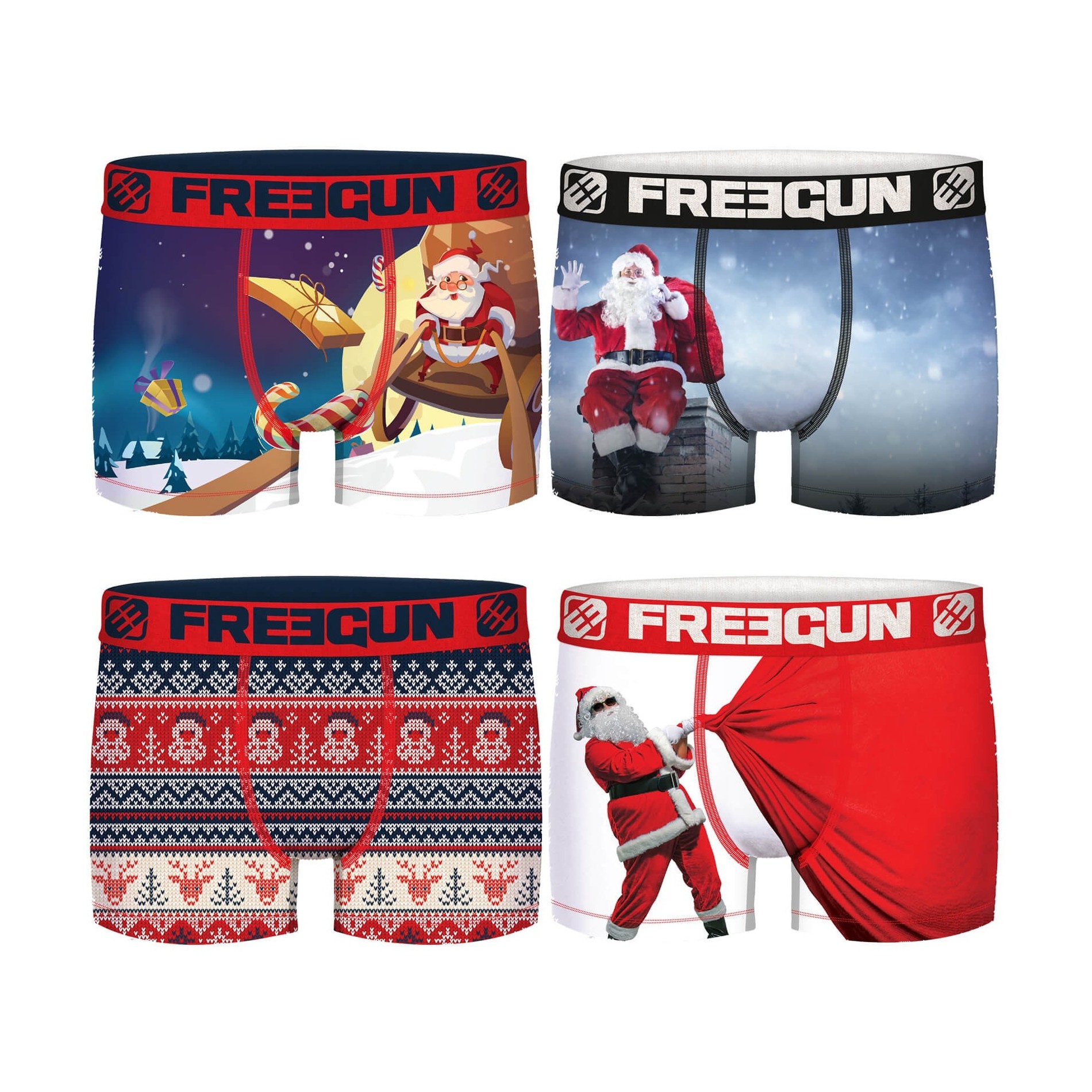 Set med 4 FREEGUN julboxershorts för pojkar. Det är en bra presentidé i slutet av åretOfficiell FREEGUN-boxareBroderat elastiskt bälte och en patch på baksidan FreegunOlika modeller att välja mellanJulspecialsamlingBekväm boxer i mikrofiber